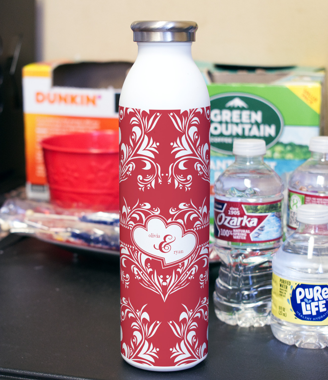 Design your bottle and we will print your design with a UV stable ink so it will not fade over time. After printing the design we apply a clear coat over the print to ensure its durability will stand up to rough every day use.