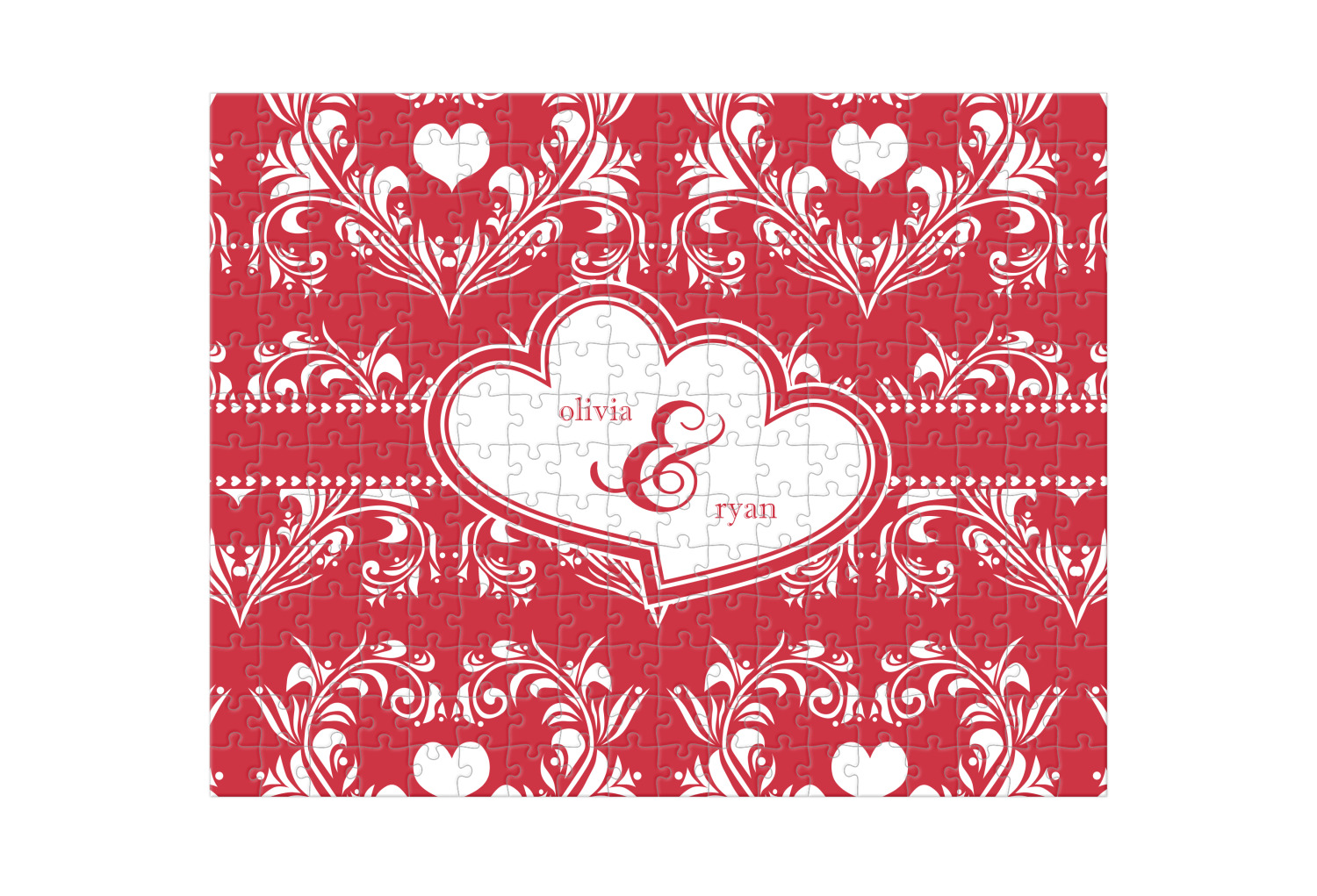 The traditional damask pattern has almost been considered romantic. We took that and bumped it up a notch with a love themed damask print.