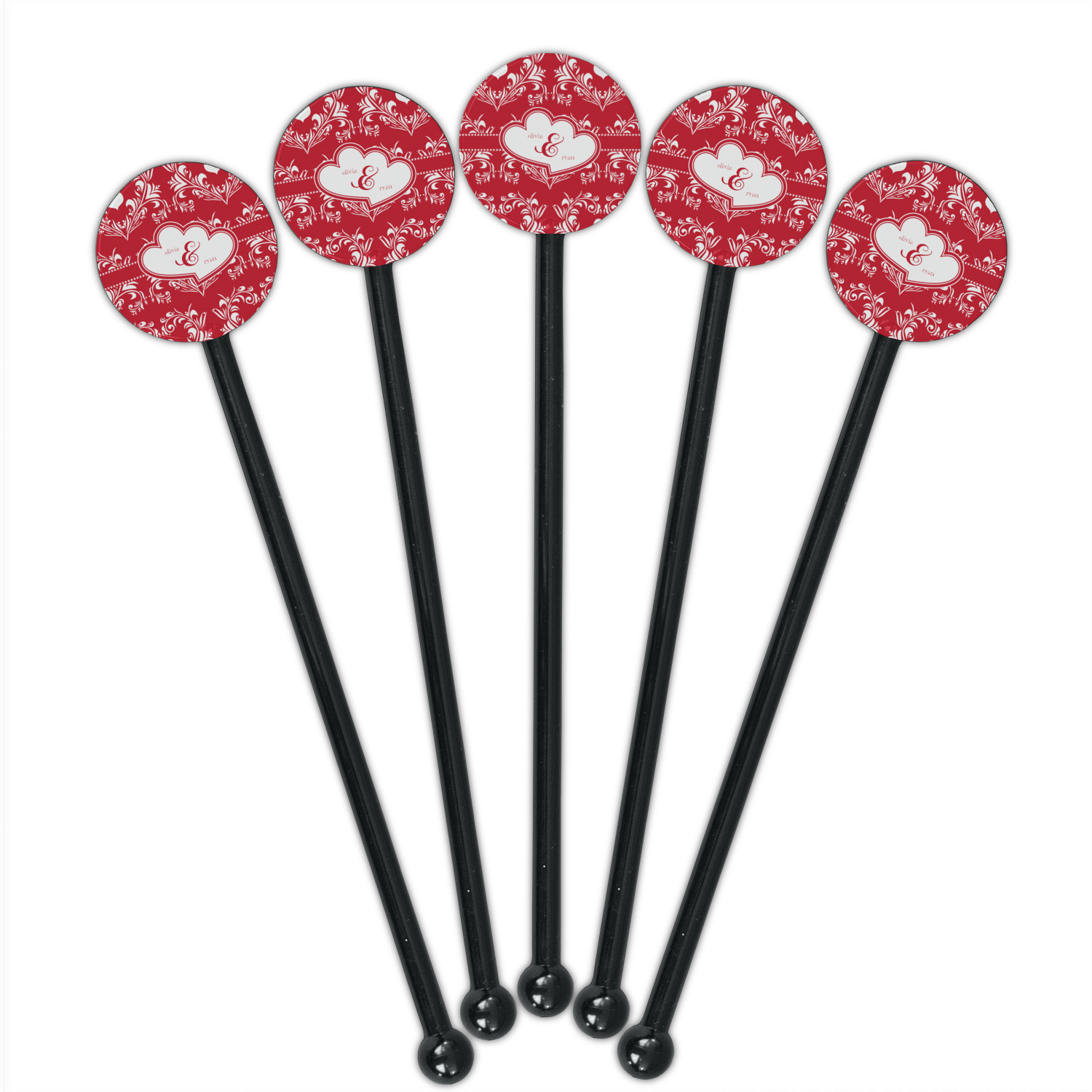 Shape + Symbol Designs for 5.5" Round Plastic Stir Sticks - Black - Single-Sided