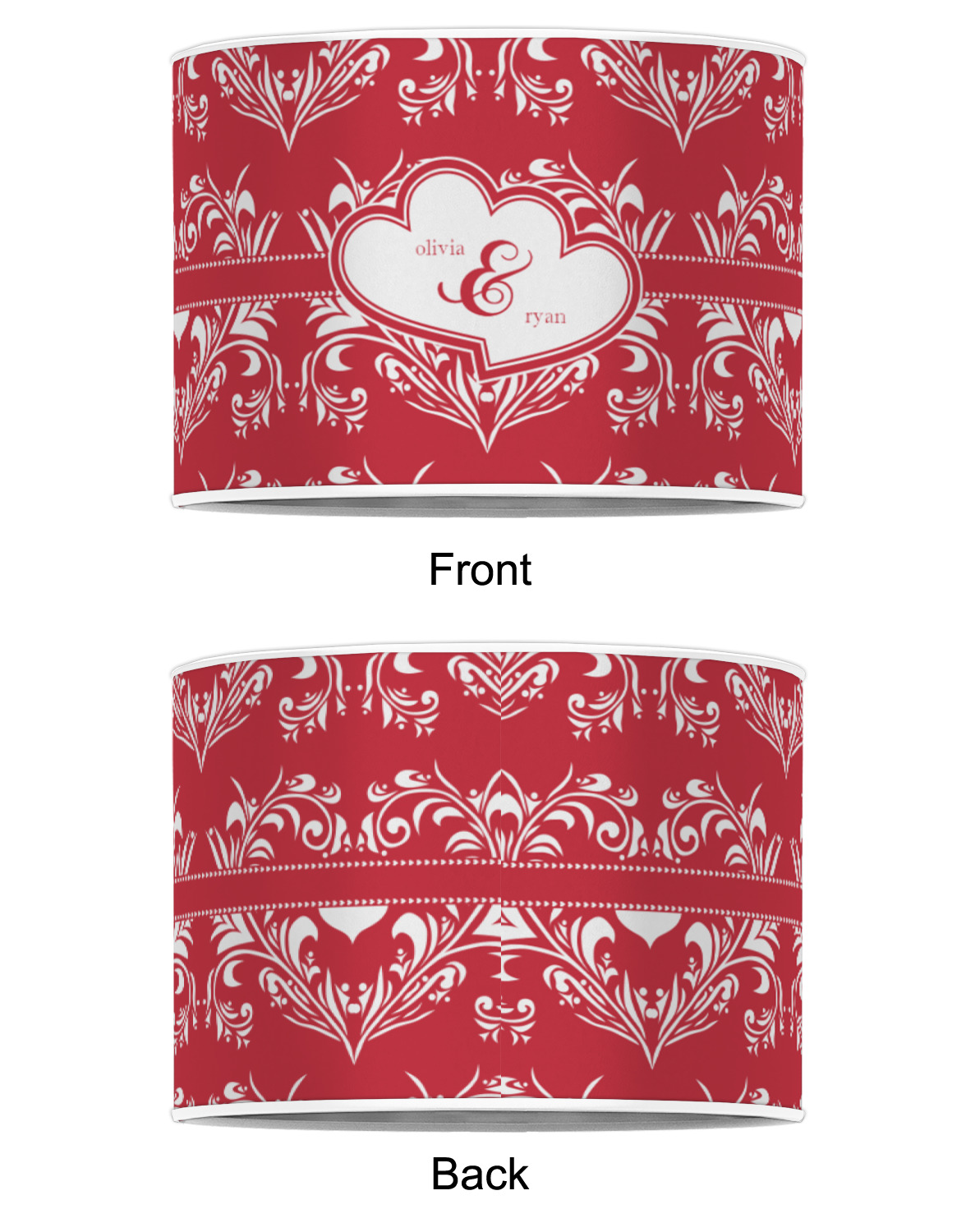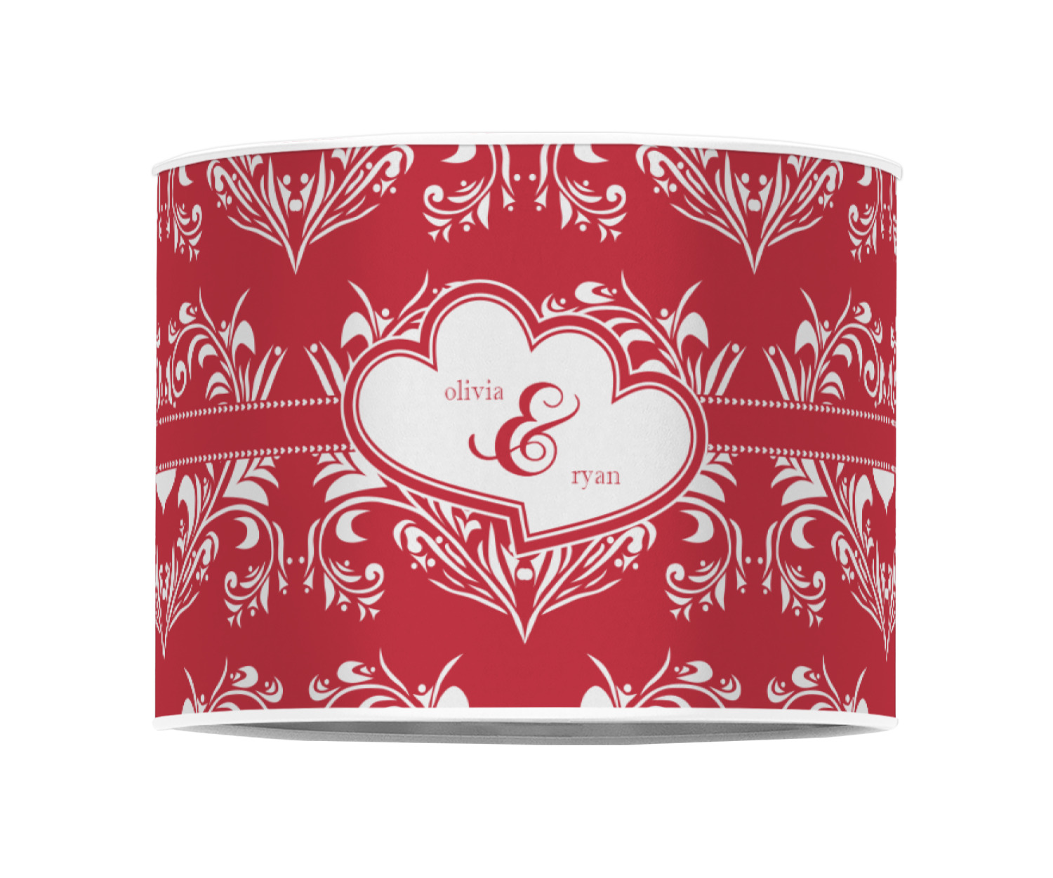 The traditional damask pattern has almost been considered romantic. We took that and bumped it up a notch with a love themed damask print.