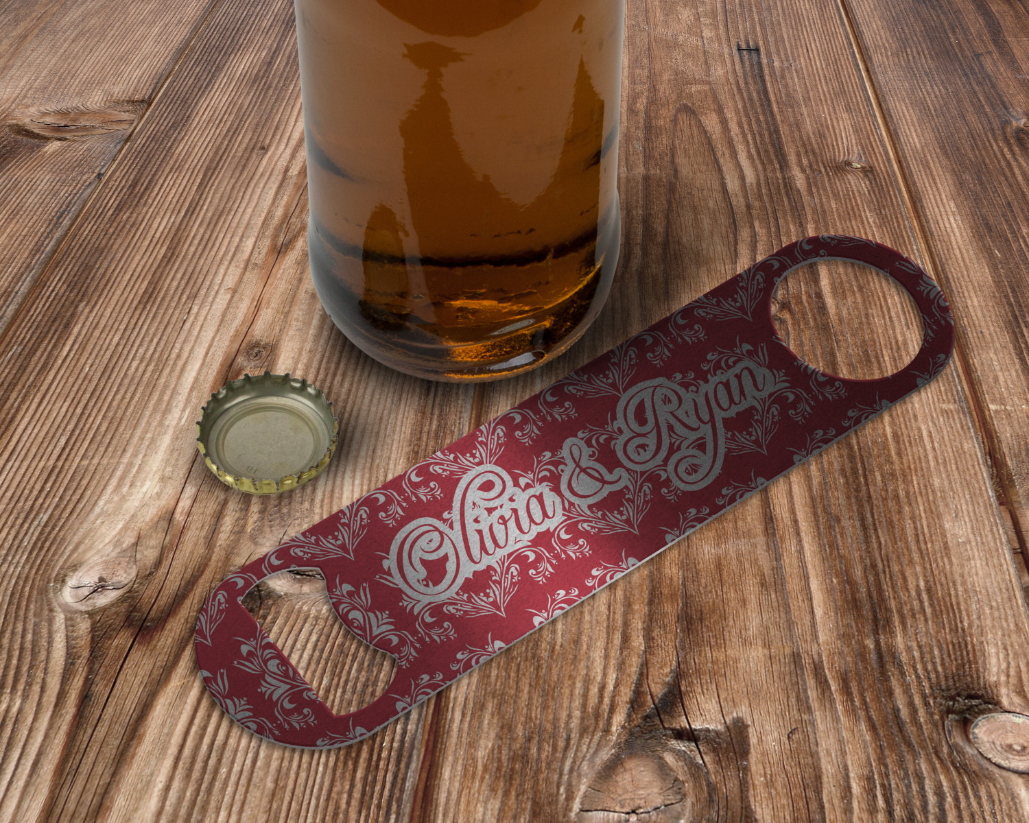 Stop struggling with the caps or your bottled beverages by purchasing one of our personalized bottle openers! These wrench-like custom bar blades are built to last. Customize one for your home's bar, or as a practical gift for a loved one!