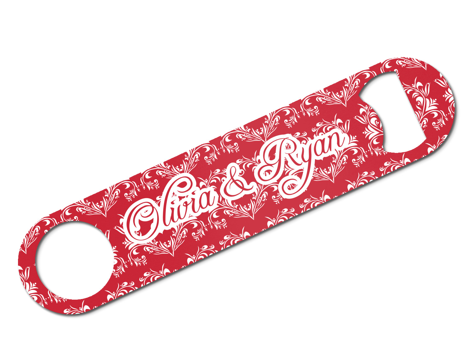 Stop struggling with the caps or your bottled beverages by purchasing one of our personalized bottle openers! These wrench-like custom bar blades are built to last. Customize one for your home's bar, or as a practical gift for a loved one!