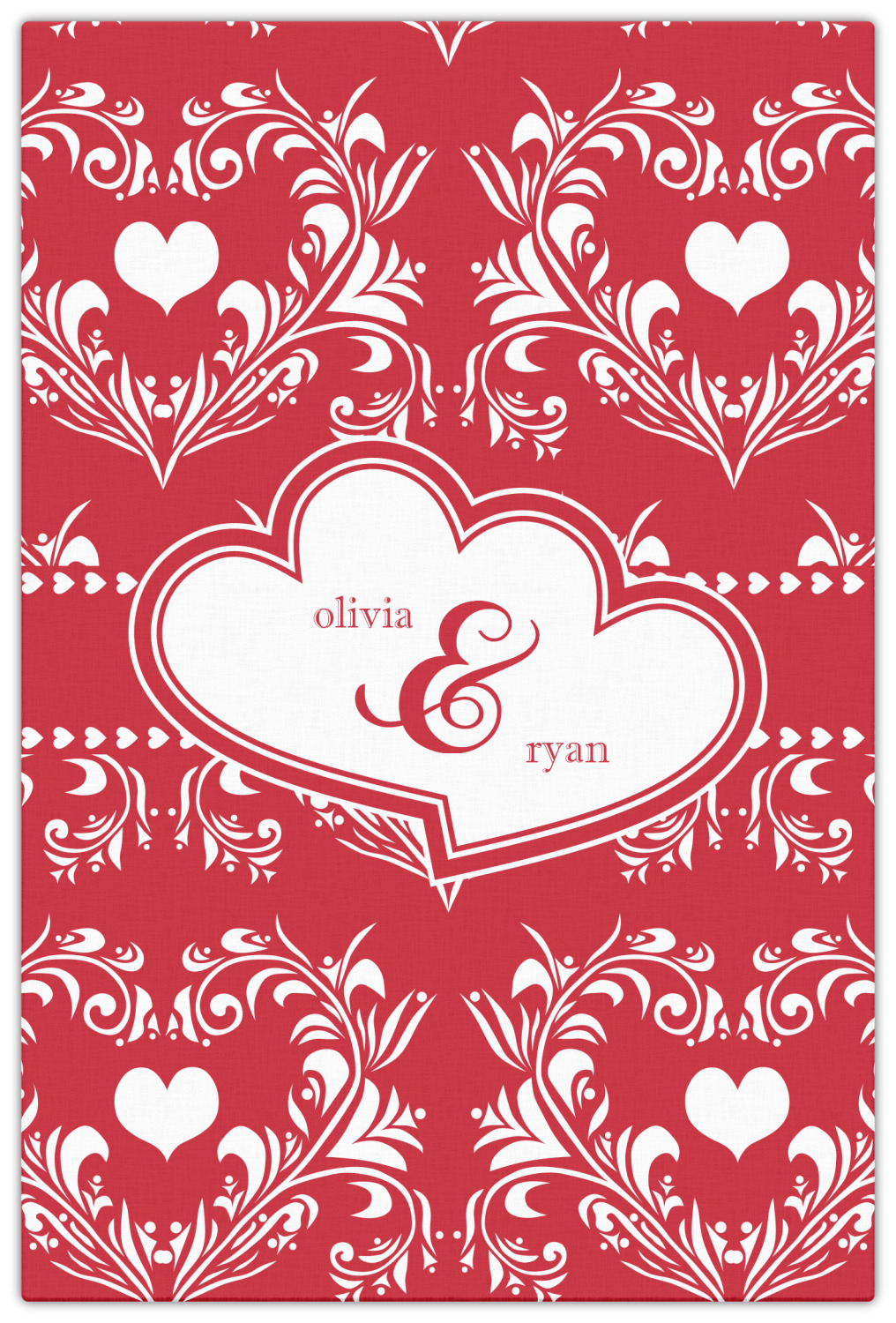 The traditional damask pattern has almost been considered romantic. We took that and bumped it up a notch with a love themed damask print.