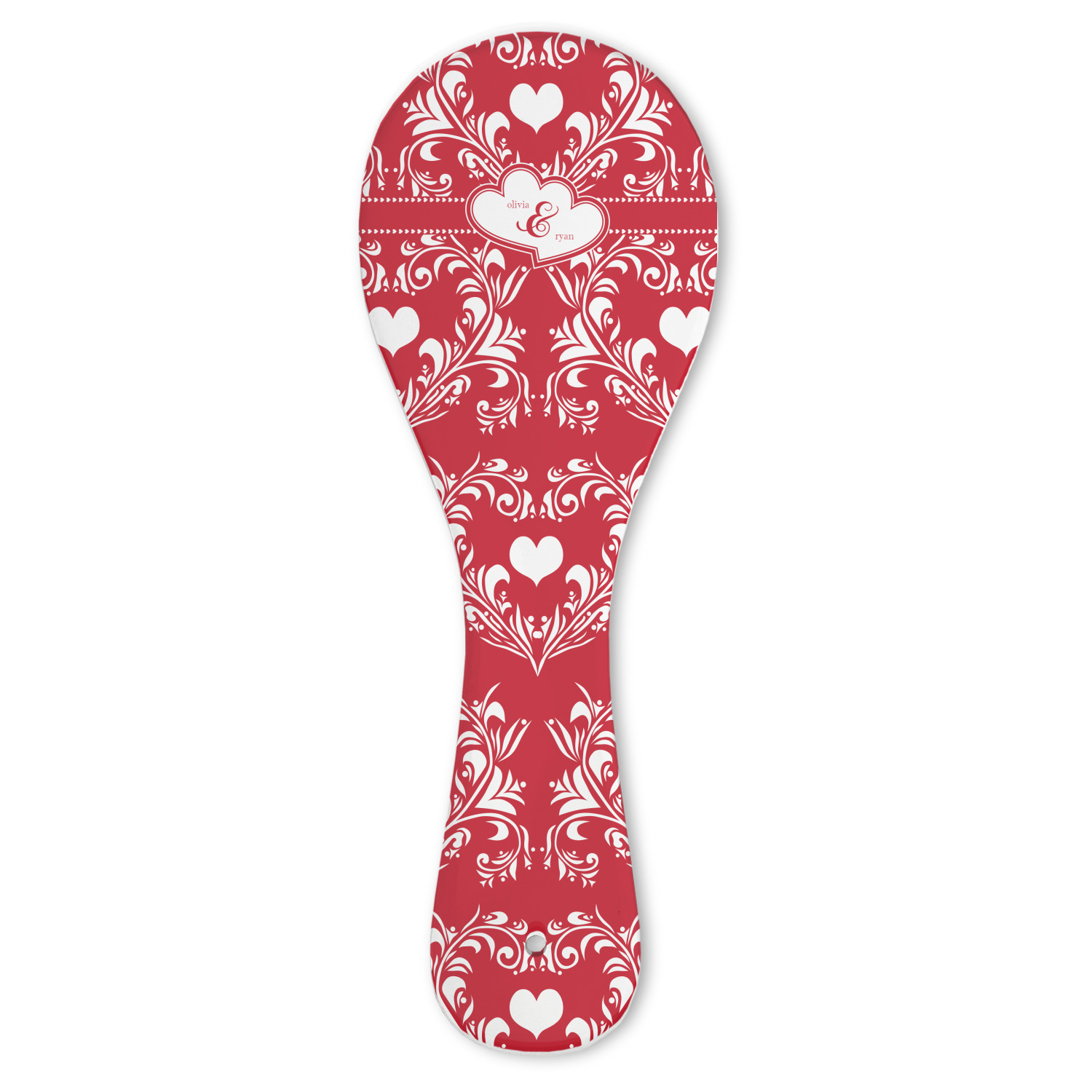 The traditional damask pattern has almost been considered romantic. We took that and bumped it up a notch with a love themed damask print.