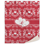 Two toned red damask hearts fill the solid red background with nothing but love. Tiny hearts link together to form a ribbon than anchor the two linking heart label. Personalize with two names to complete this love inspired damask design.