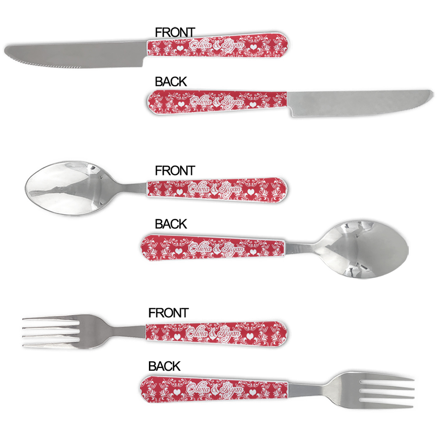 We print your customization on the handles, making these cutlery sets unique to you.