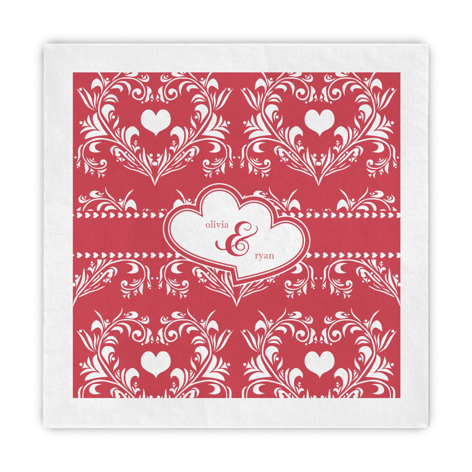 The traditional damask pattern has almost been considered romantic. We took that and bumped it up a notch with a love themed damask print.