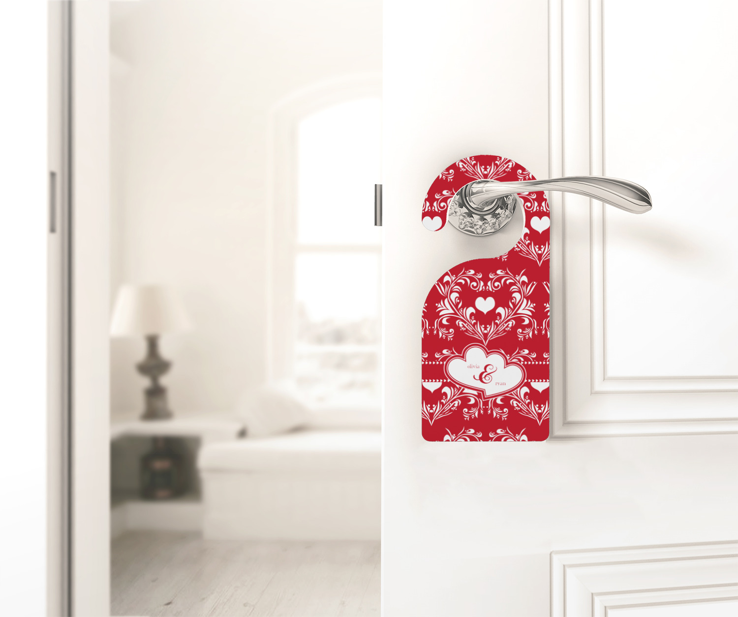 The traditional damask pattern has almost been considered romantic. We took that and bumped it up a notch with a love themed damask print.