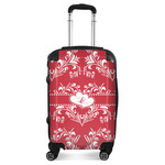 Two toned red damask hearts fill the solid red background with nothing but love. Tiny hearts link together to form a ribbon than anchor the two linking heart label. Personalize with two names to complete this love inspired damask design.