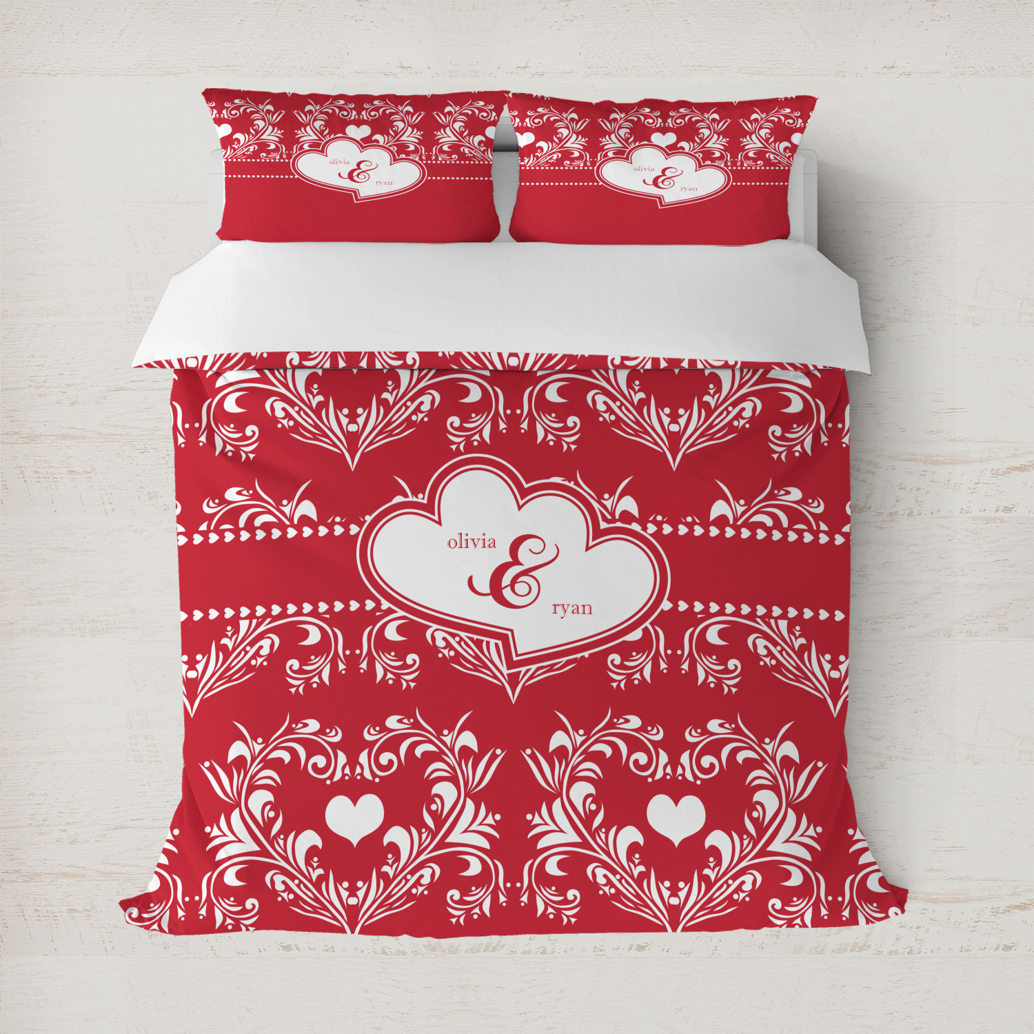 The traditional damask pattern has almost been considered romantic. We took that and bumped it up a notch with a love themed damask print.