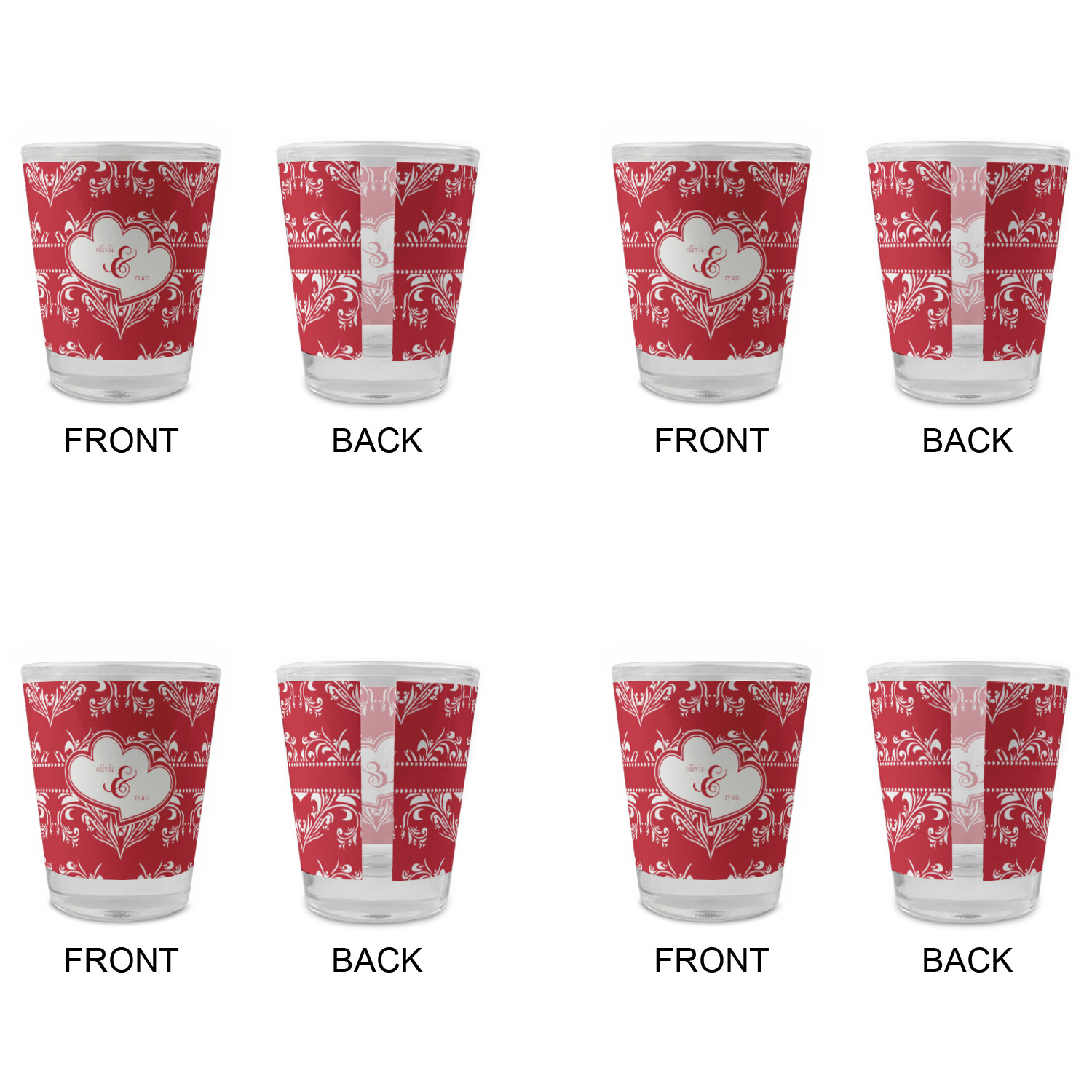 Made with frosted glass, these shot glasses are printed in full color with the design of your choice. They are a standard 1.5oz shot glass and are 2.4" tall. The print is wrapped around the shot glass in a full wrap and boldly displays your customization.