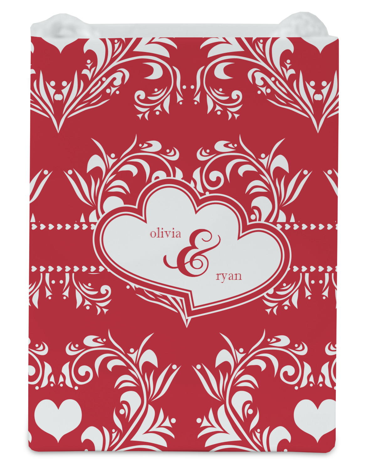 The traditional damask pattern has almost been considered romantic. We took that and bumped it up a notch with a love themed damask print.