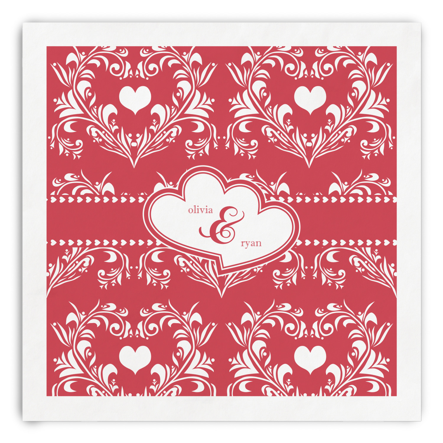 The traditional damask pattern has almost been considered romantic. We took that and bumped it up a notch with a love themed damask print.