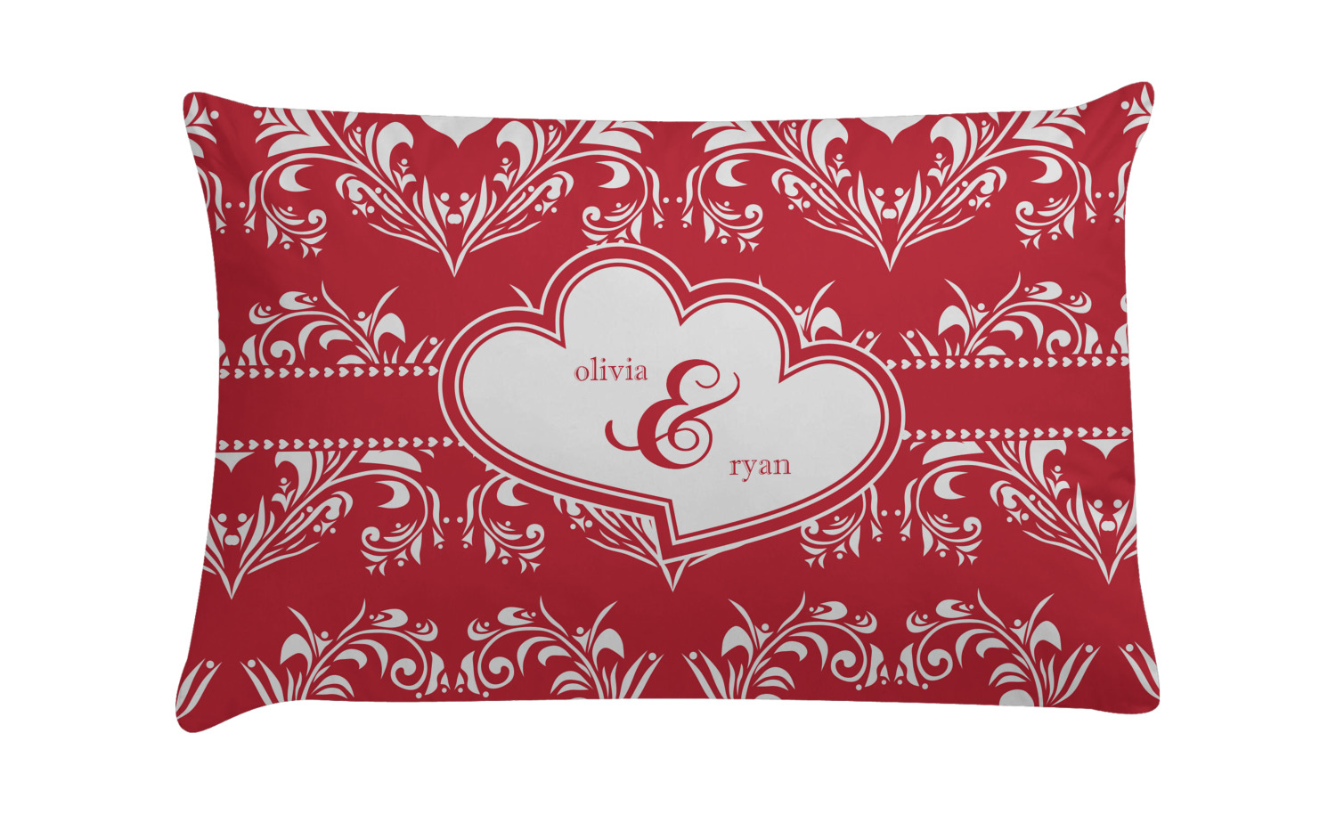 The traditional damask pattern has almost been considered romantic. We took that and bumped it up a notch with a love themed damask print.
