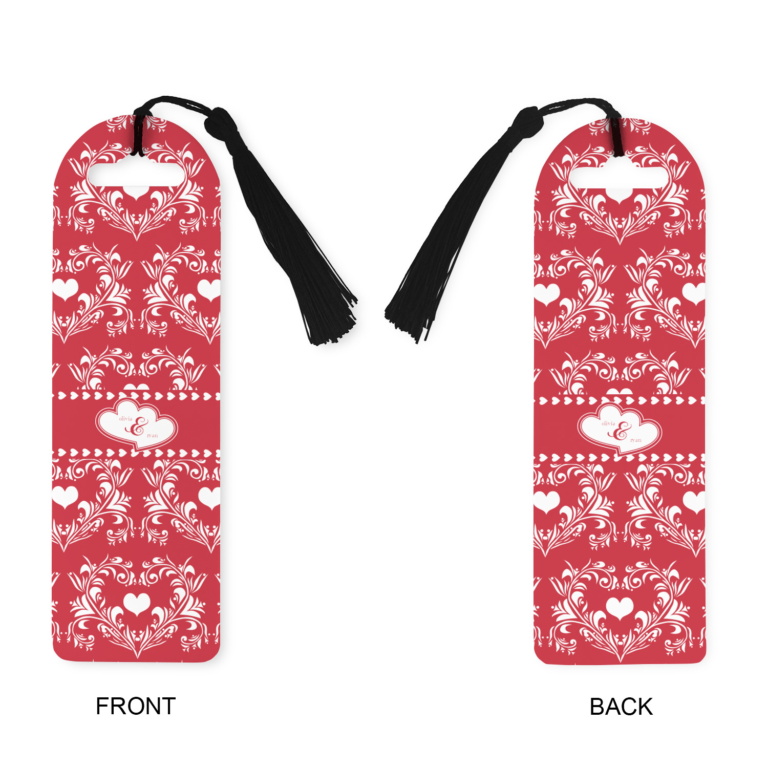 Made from a durable, flexible plastic, these bookmarks are printed with your custom design on them. With the tassel on them they make it easy to find your page in your book. These are a rectangular shape 7 1/4 inches tall with a rounded top and are approximately 2 1/4 inches wide.