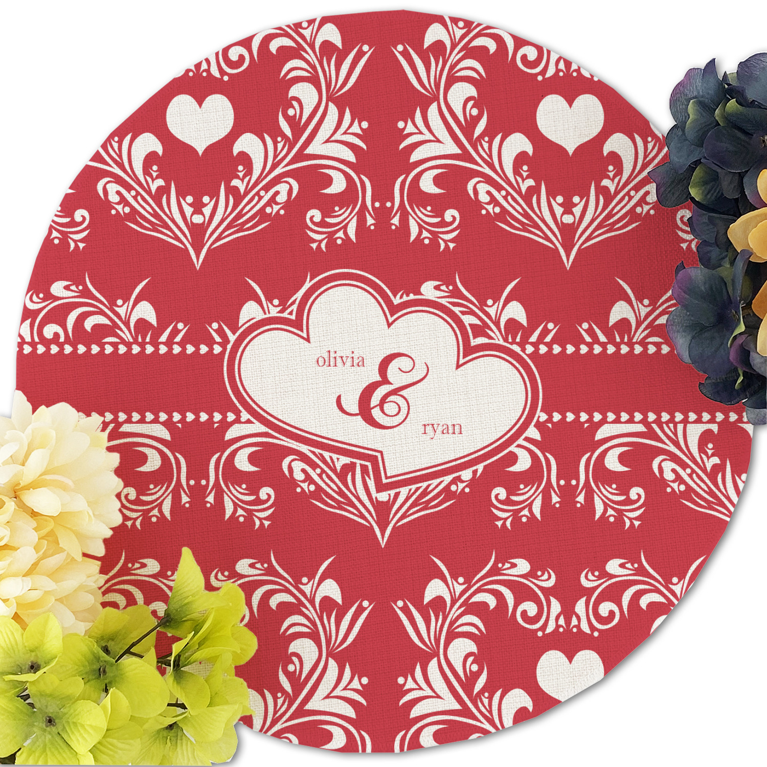 The traditional damask pattern has almost been considered romantic. We took that and bumped it up a notch with a love themed damask print.
