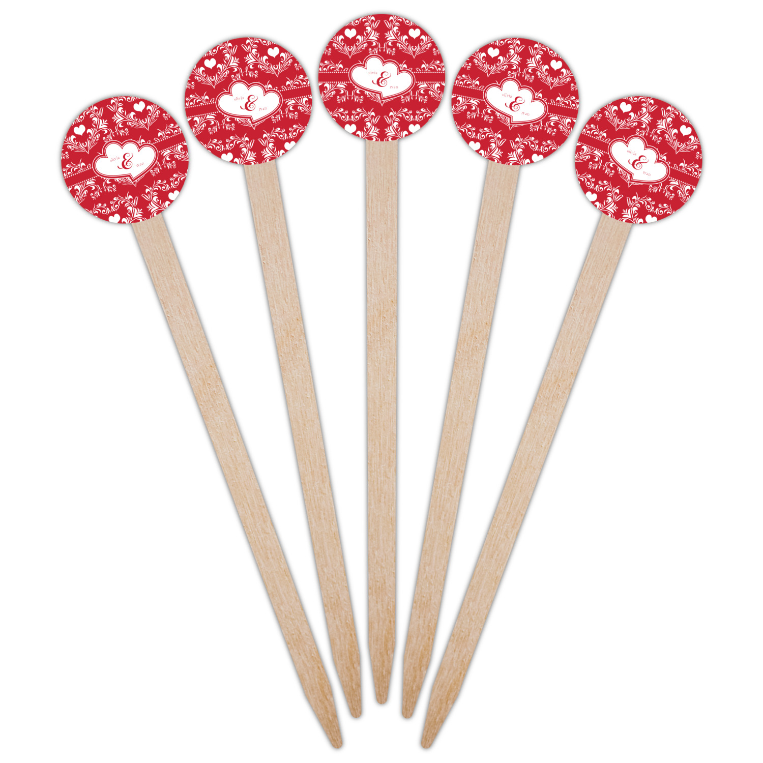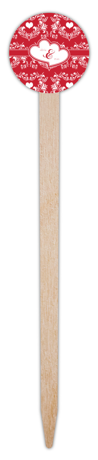 Two toned red damask hearts fill the solid red background with nothing but love. Tiny hearts link together to form a ribbon than anchor the two linking heart label. Personalize with two names to complete this love inspired damask design.