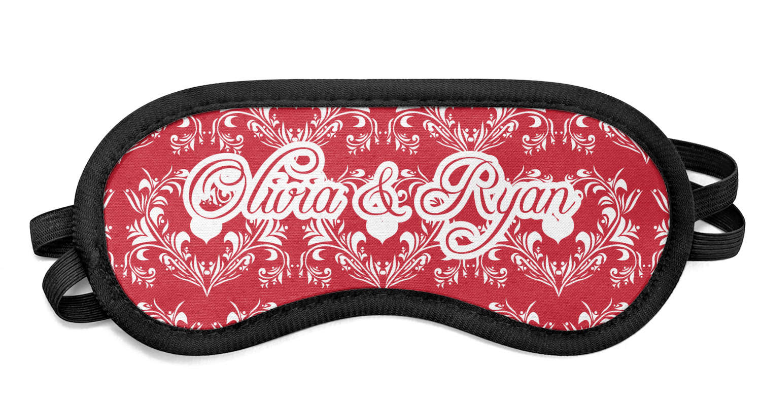 Two toned red damask hearts fill the solid red background with nothing but love. Tiny hearts link together to form a ribbon than anchor the two linking heart label. Personalize with two names to complete this love inspired damask design.