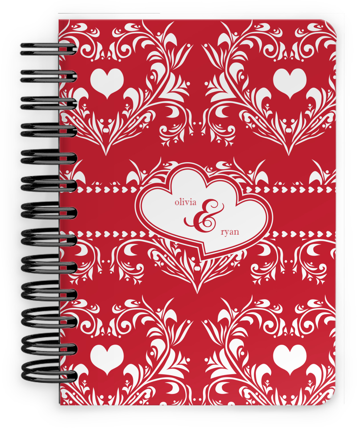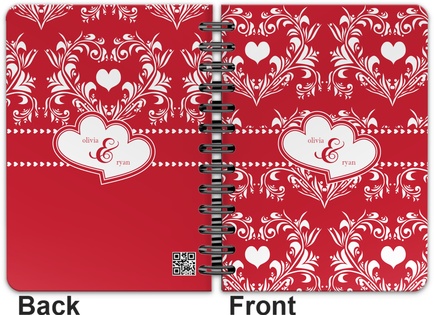 This spiral notebook includes 75 sheets of thick, ruled paper. The front and back of this custom notebook is made of a robust, laminate, plastic covering. We print your personalization on these two panels, underneath a glossy finish, which emphasizes the colors of your design. The two panels and the sheets of paper are held together by a sturdy, black coil. The paper within your bound notebook is perforated for easy, clean tearing.