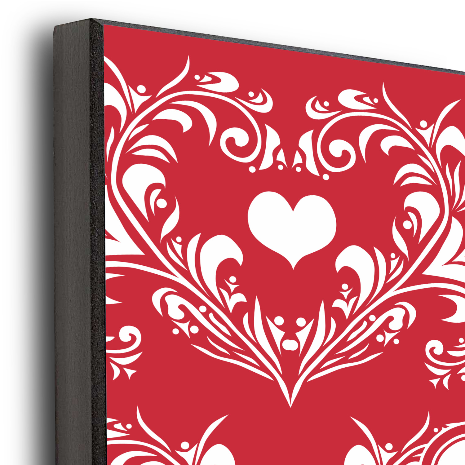 The traditional damask pattern has almost been considered romantic. We took that and bumped it up a notch with a love themed damask print.