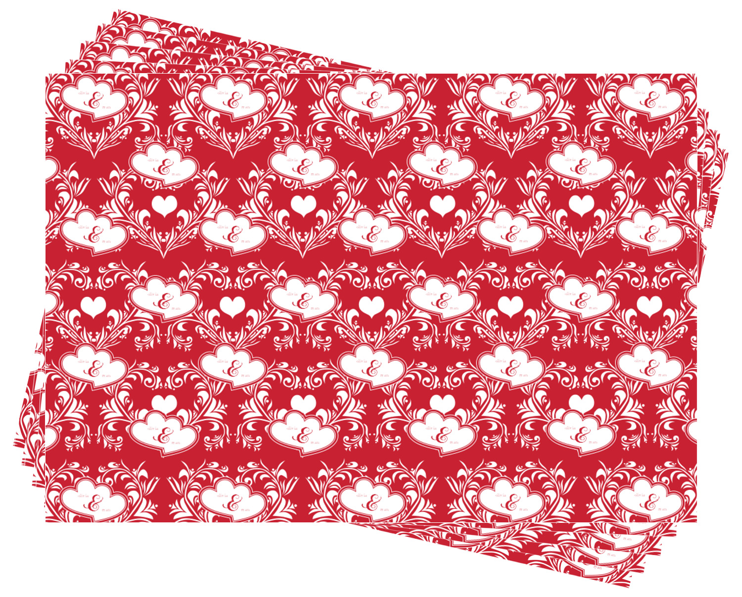 The traditional damask pattern has almost been considered romantic. We took that and bumped it up a notch with a love themed damask print.