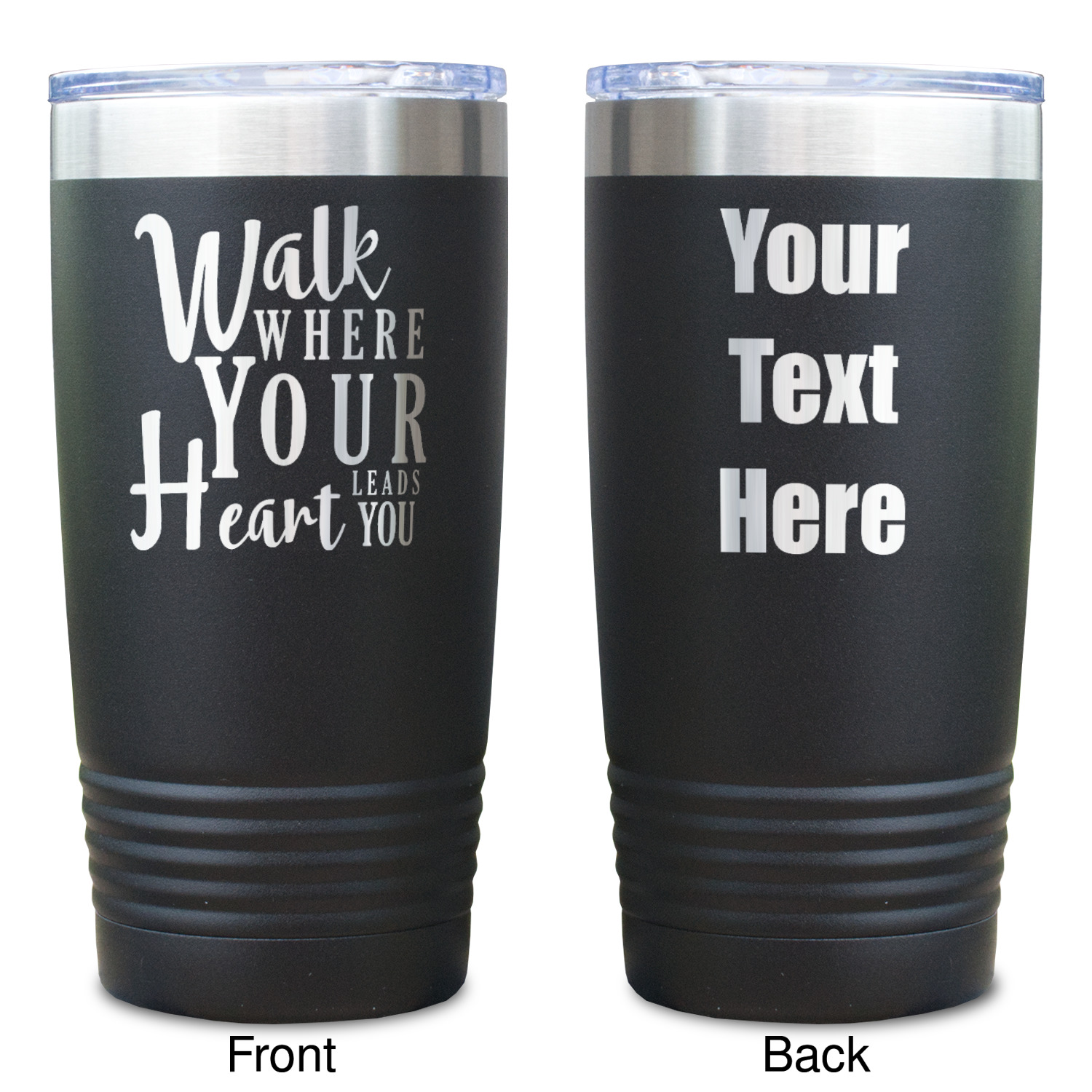 With our personalized 20 oz double wall stainless steel tumblers, you'll never have to settle for a plain, boring tumbler again! These tumblers will be a wonderful addition to your drinkware collection and will make those long commutes much brighter. Personalize one for yourself, or give these personalized tumblers as a gift to relatives, friends, or coworkers!