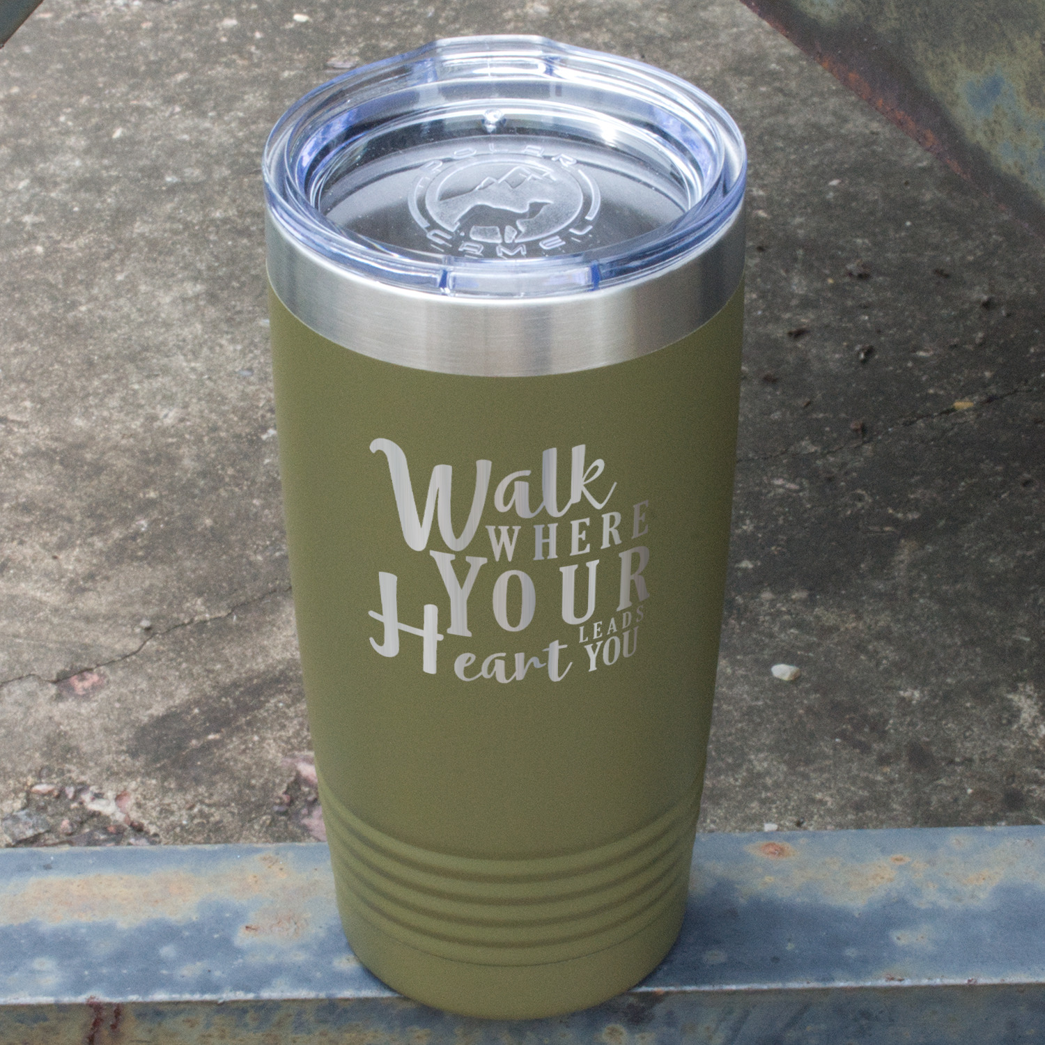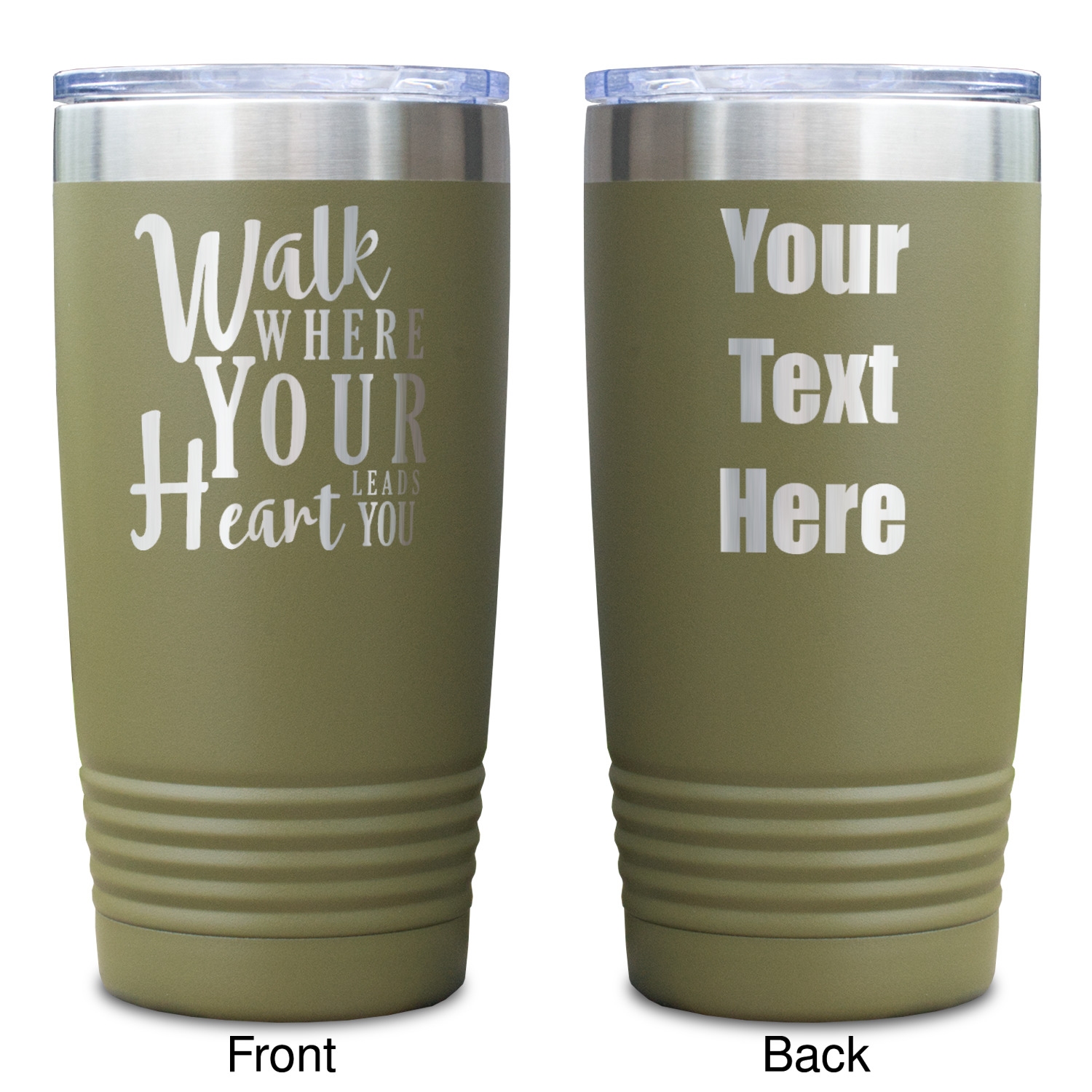 Available in 8 unique colors, these cups are crafted from 18/8 stainless steel and powder coated for their durable finish. With the 8 colors being Black, Pink, Red, Teal, White, Grey, Royal Blue, and Olive Green, you are sure to find a cup to fit your personality. You can chose to engrave on the front or the front and back of the cup. Use our design studio to design your own cup and we laser engrave it for you.