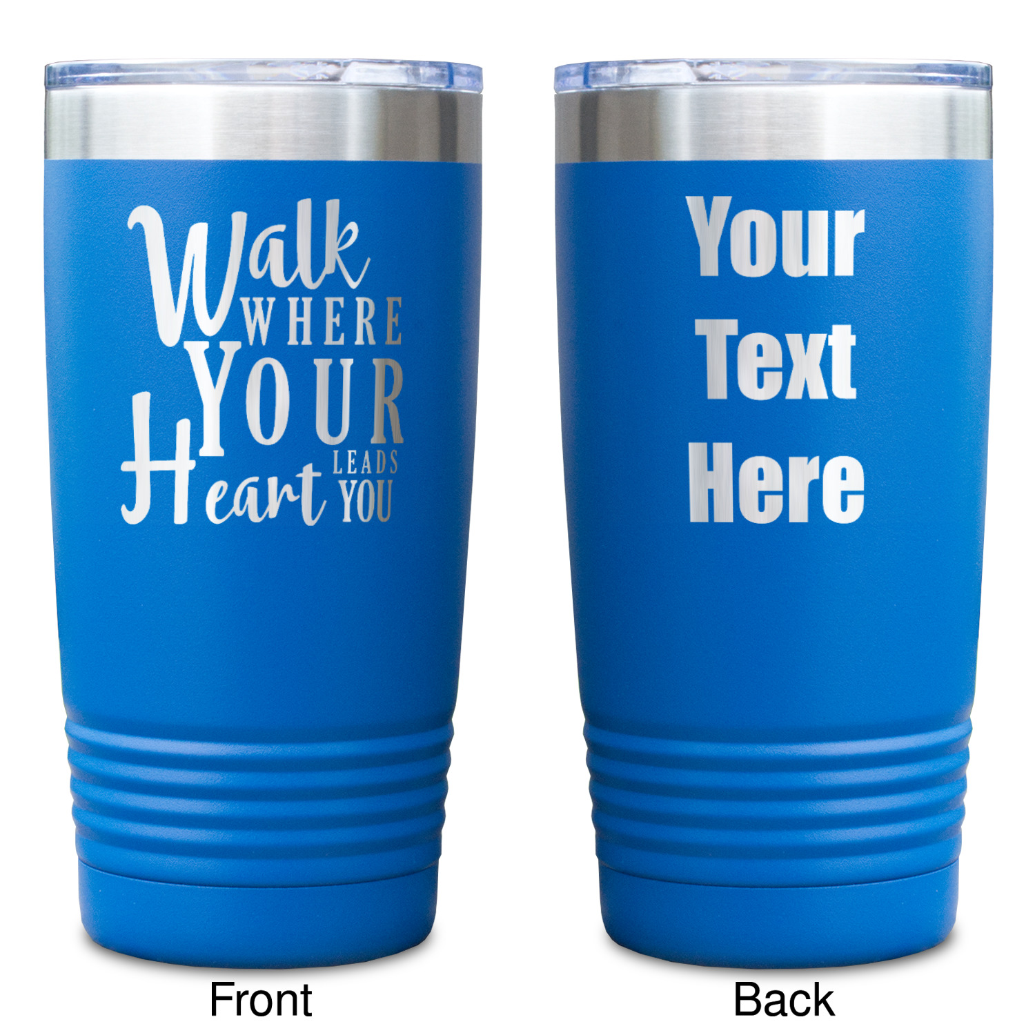 With our personalized 20 oz double wall stainless steel tumblers, you'll never have to settle for a plain, boring tumbler again! These tumblers will be a wonderful addition to your drinkware collection and will make those long commutes much brighter. Personalize one for yourself, or give these personalized tumblers as a gift to relatives, friends, or coworkers!
