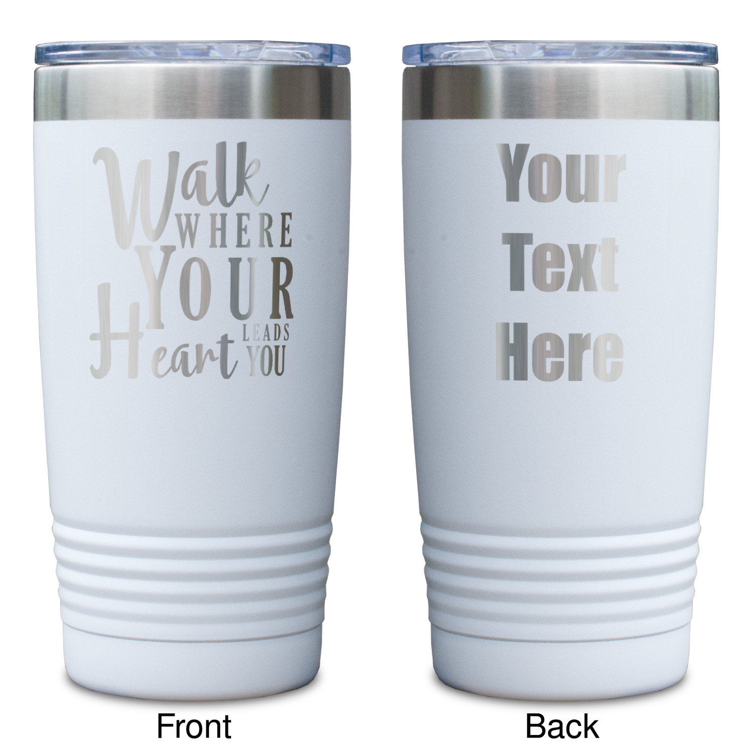With our personalized 20 oz double wall stainless steel tumblers, you'll never have to settle for a plain, boring tumbler again! These tumblers will be a wonderful addition to your drinkware collection and will make those long commutes much brighter. Personalize one for yourself, or give these personalized tumblers as a gift to relatives, friends, or coworkers!