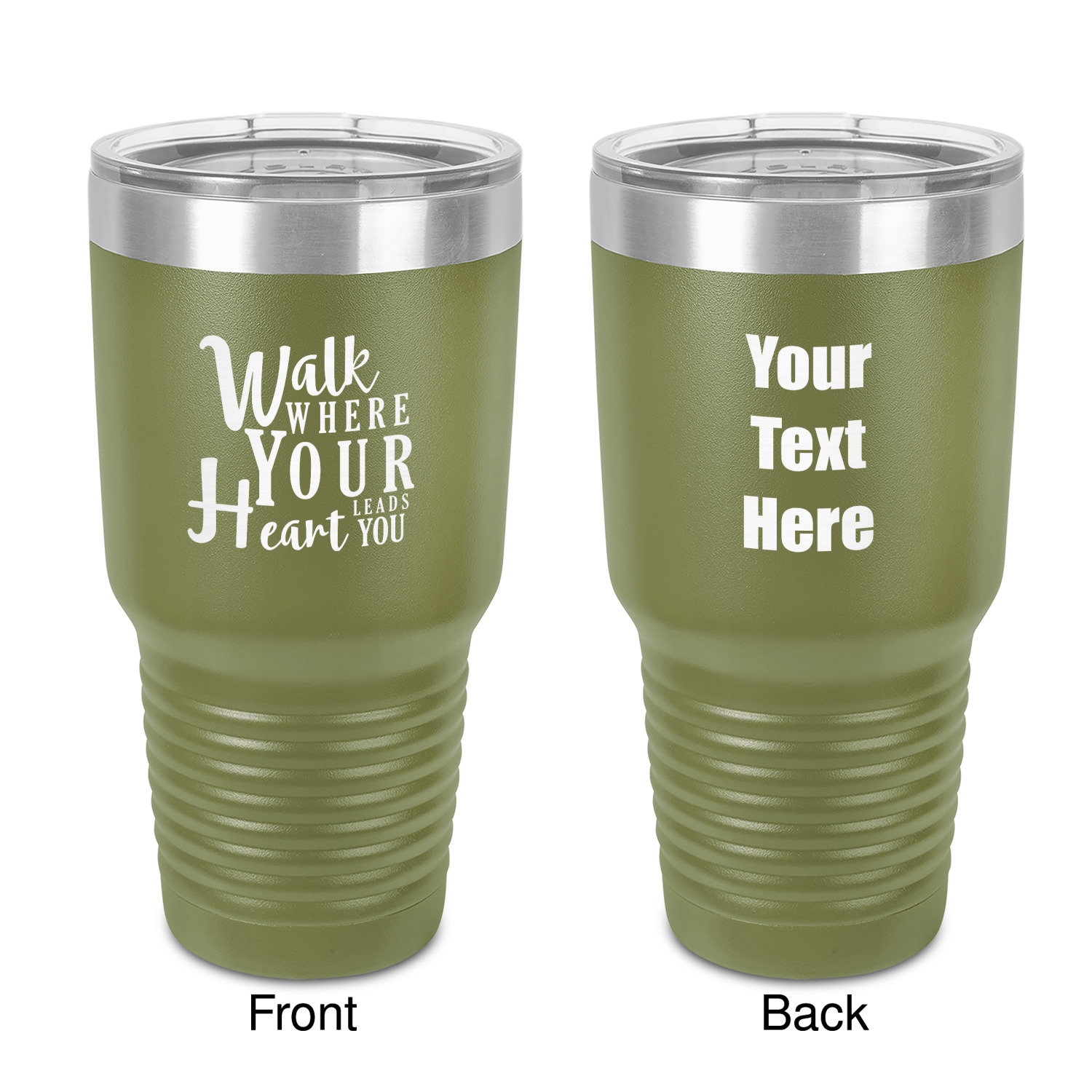 With our personalized 30 oz double wall stainless steel tumblers, you'll never have to settle for a plain, boring tumbler again! These tumblers will be a wonderful addition to your drinkware collection and will make those long commutes much brighter. Personalize one for yourself, or give these personalized tumblers as a gift to relatives, friends, or coworkers!