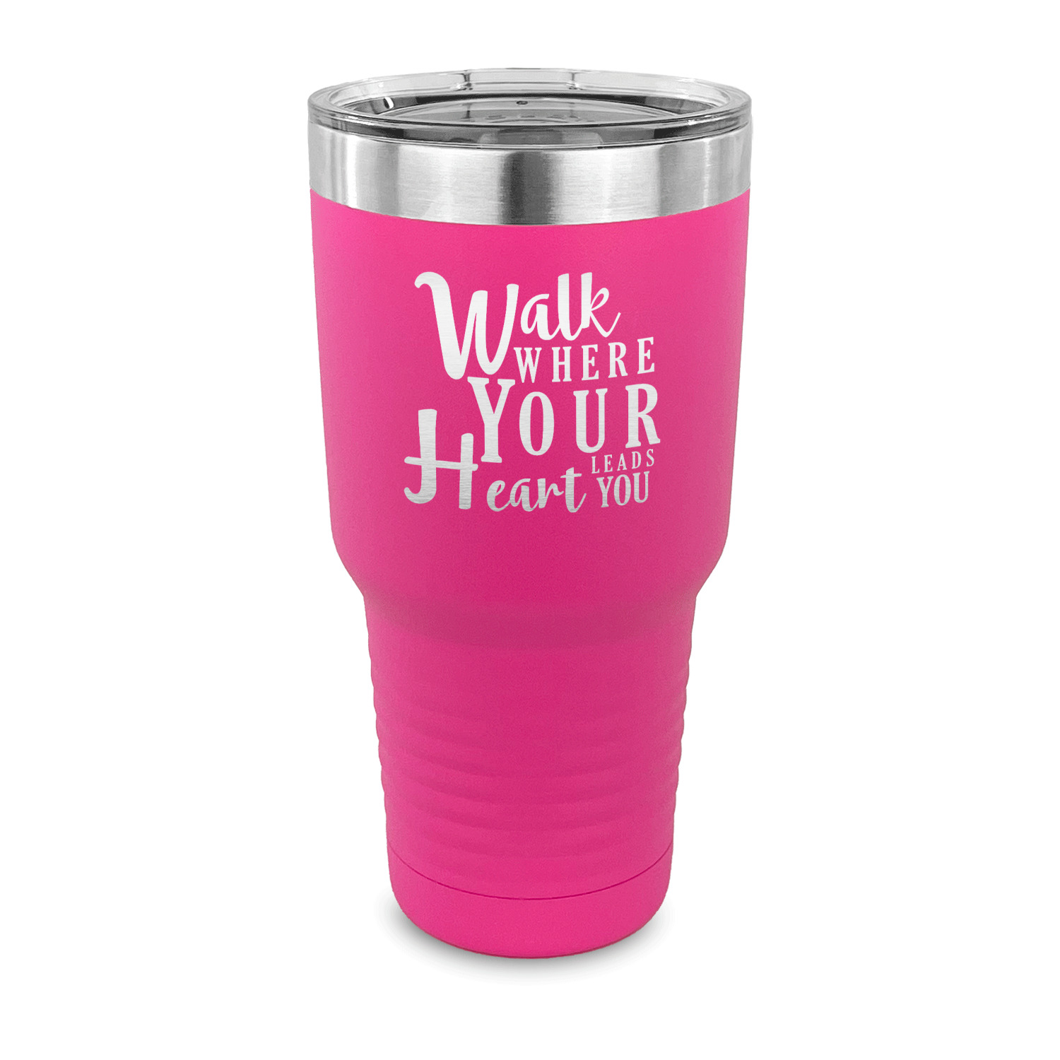 With the 5 colors - Black, Navy, Red, Pink and Coral, you are sure to find a cup to fit your personality. You can chose to engrave on the front or the front and back of the cup. Use our design studio to design your own cup and we laser engrave it for you.
