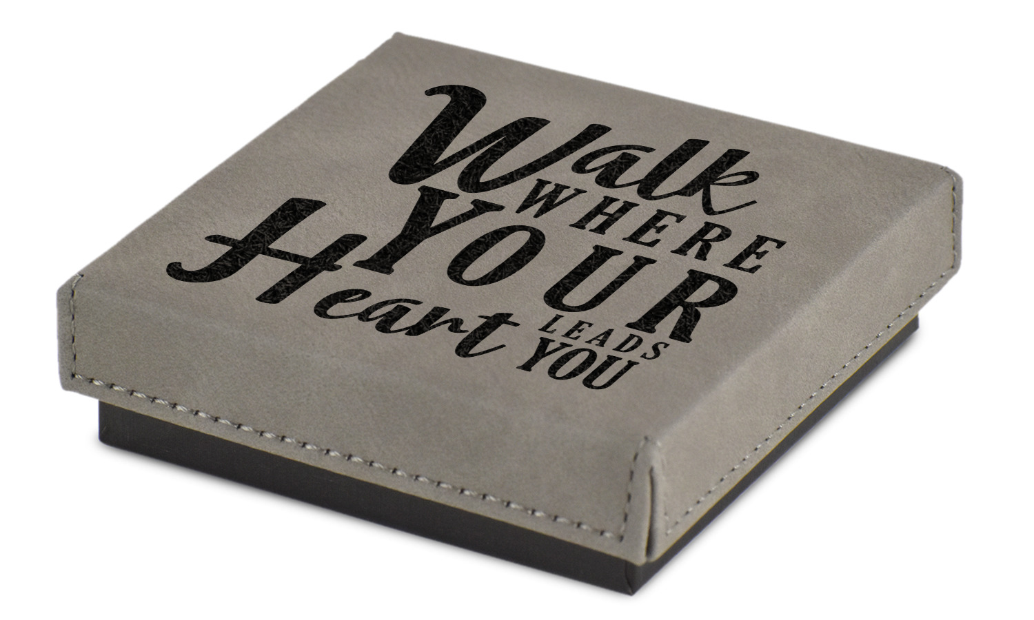 This jewelry gift box measures 3.5 inches long by 3.5 inches wide, and 1 inch deep. The box fits different sized jewelry items such as bracelets, necklaces, watches, earrings, rings and more. Engraved with a laser this high quality paper board and faux leather jewelry gift box is unique and makes any gift stand out.