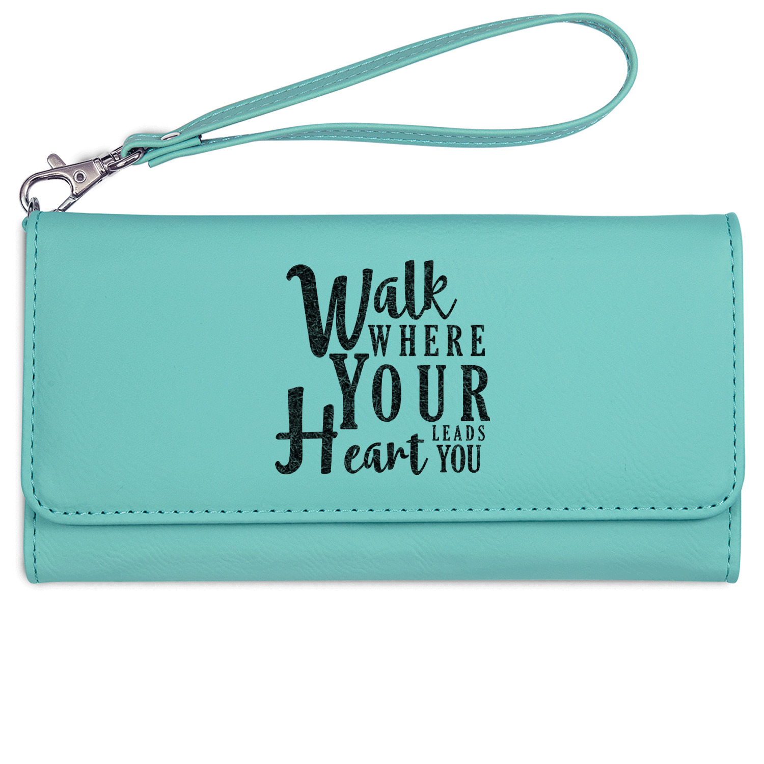 These personalized ladies leather wallets are available in 2 colors - rawhide / cognac and teal.