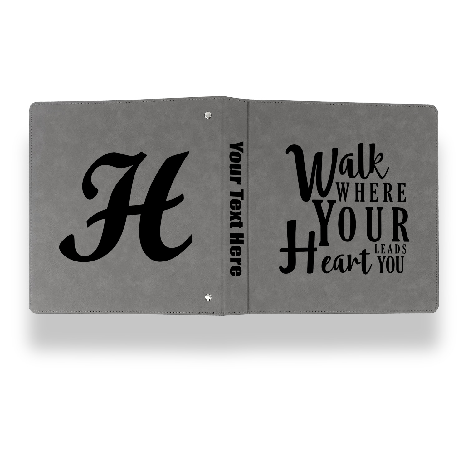 Made from a high quality faux leather covering, these binders are laser engrave with your choice of personalization. The 1" d-rings inside hold up to 175 sheets of standard 8.5" x 11" US Letter or notebook paper or 8.27" x 11.69" A4 size paper.