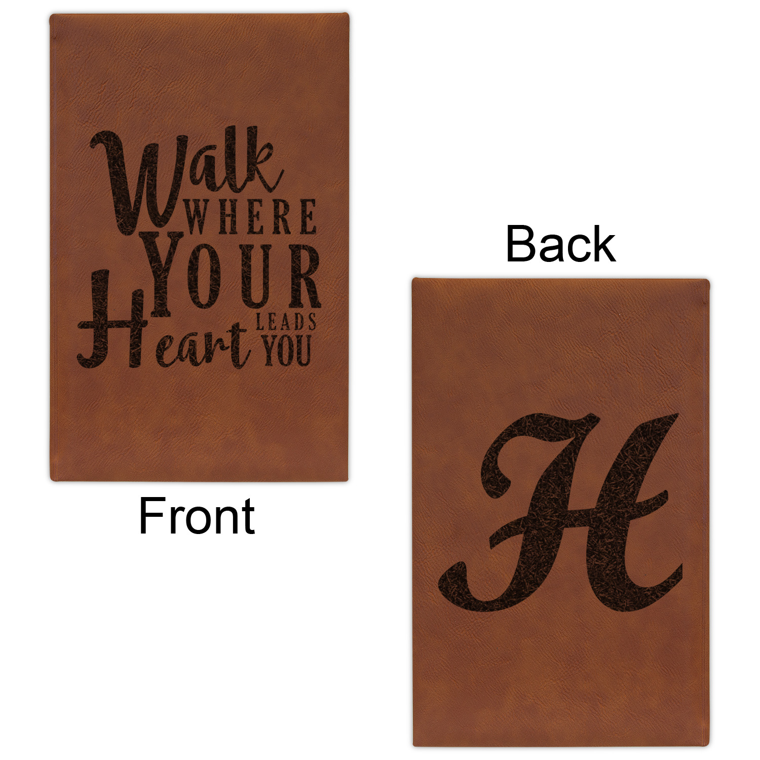 The faux leather covers are a rich cognac / rawhide color and can be customized with your design. From a simple name or monogram or a logo to a detailed mandala - the choice for customization & personalization is truly yours. Customize one of our designs or upload your own.