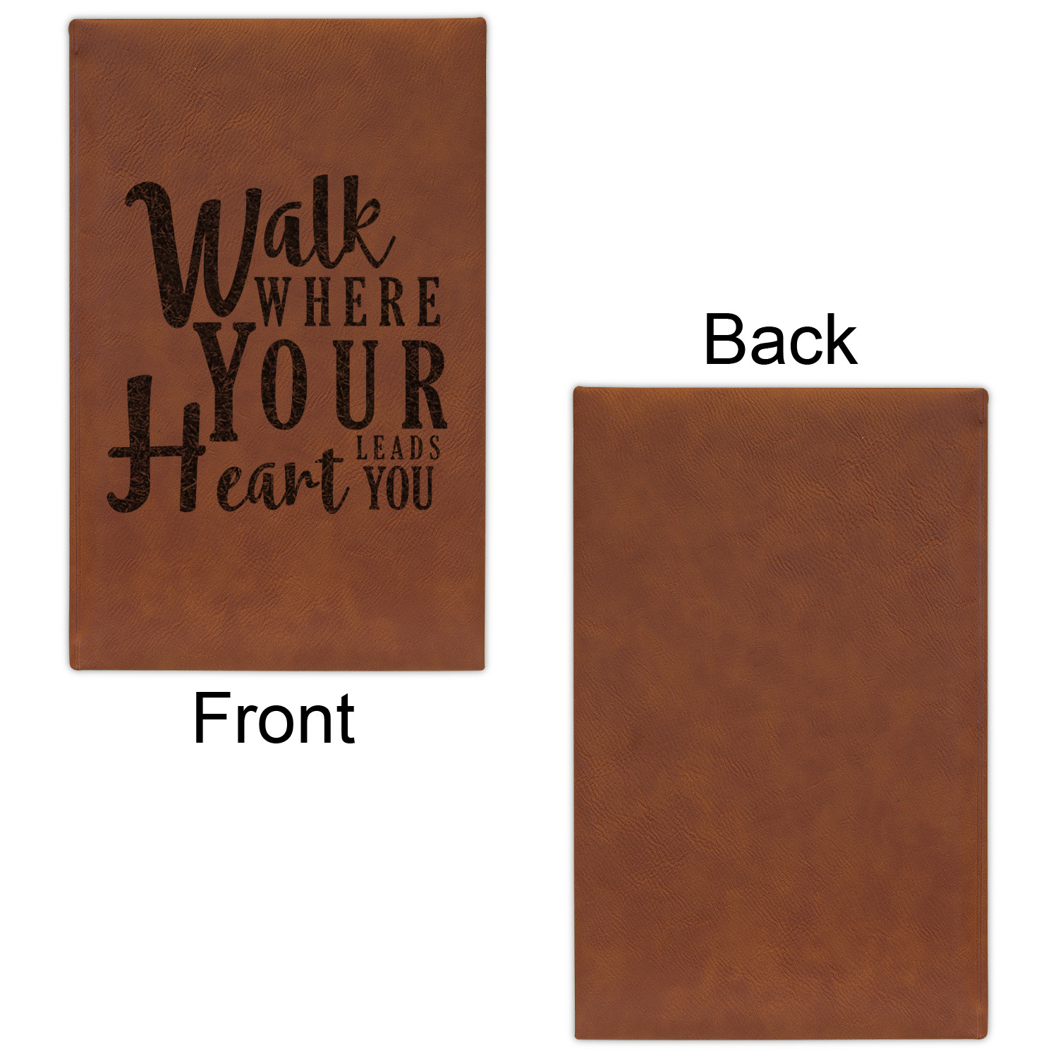 The faux leather covers are a rich cognac / rawhide color and can be customized with your design. From a simple name or monogram or a logo to a detailed mandala - the choice for customization & personalization is truly yours. Customize one of our designs or upload your own.