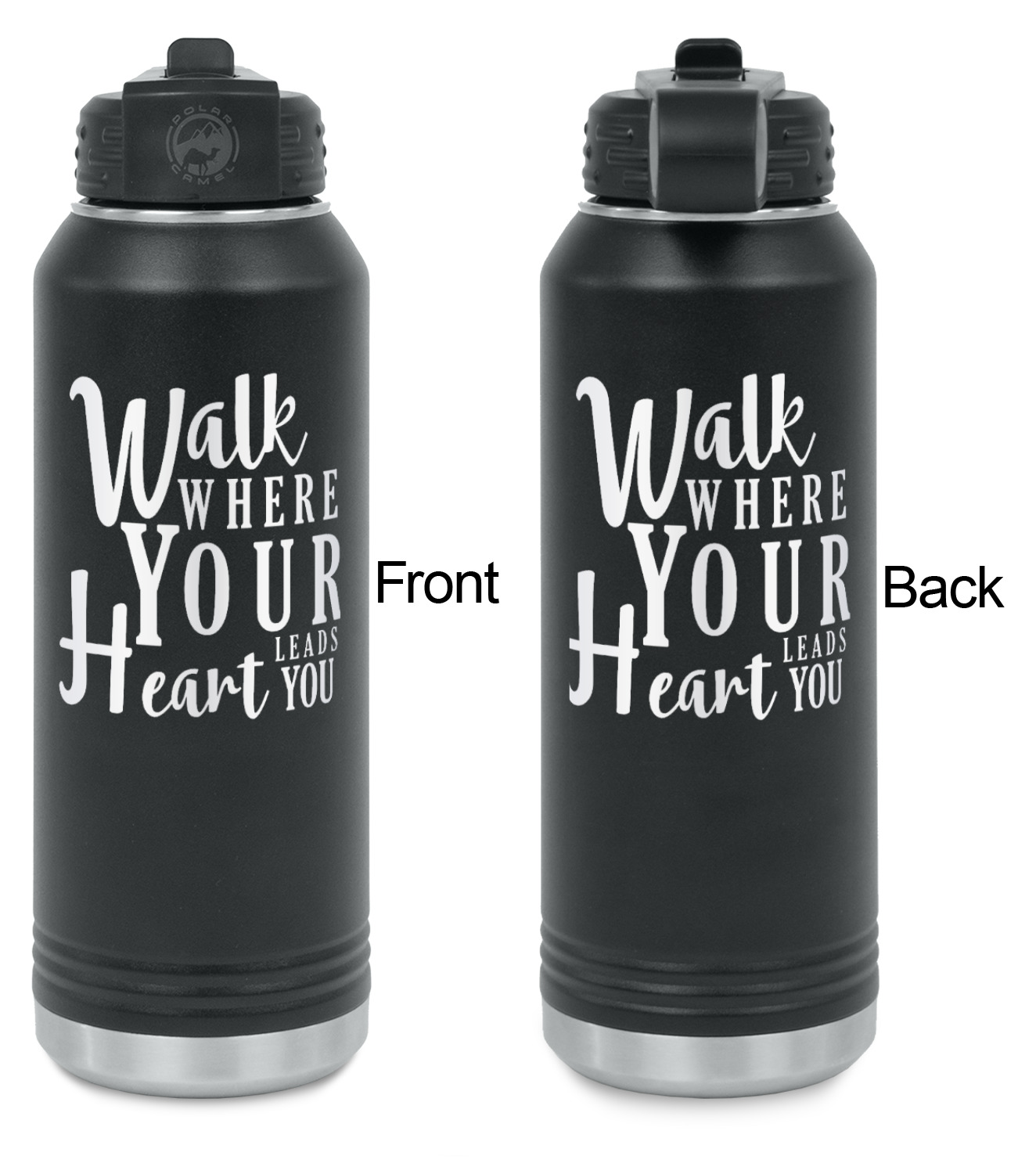 Our laser engraved stainless steel water bottles are designed for on the go lifestyle. These water bottles are perfect for the gym, the office, traveling, camping, hiking etc.