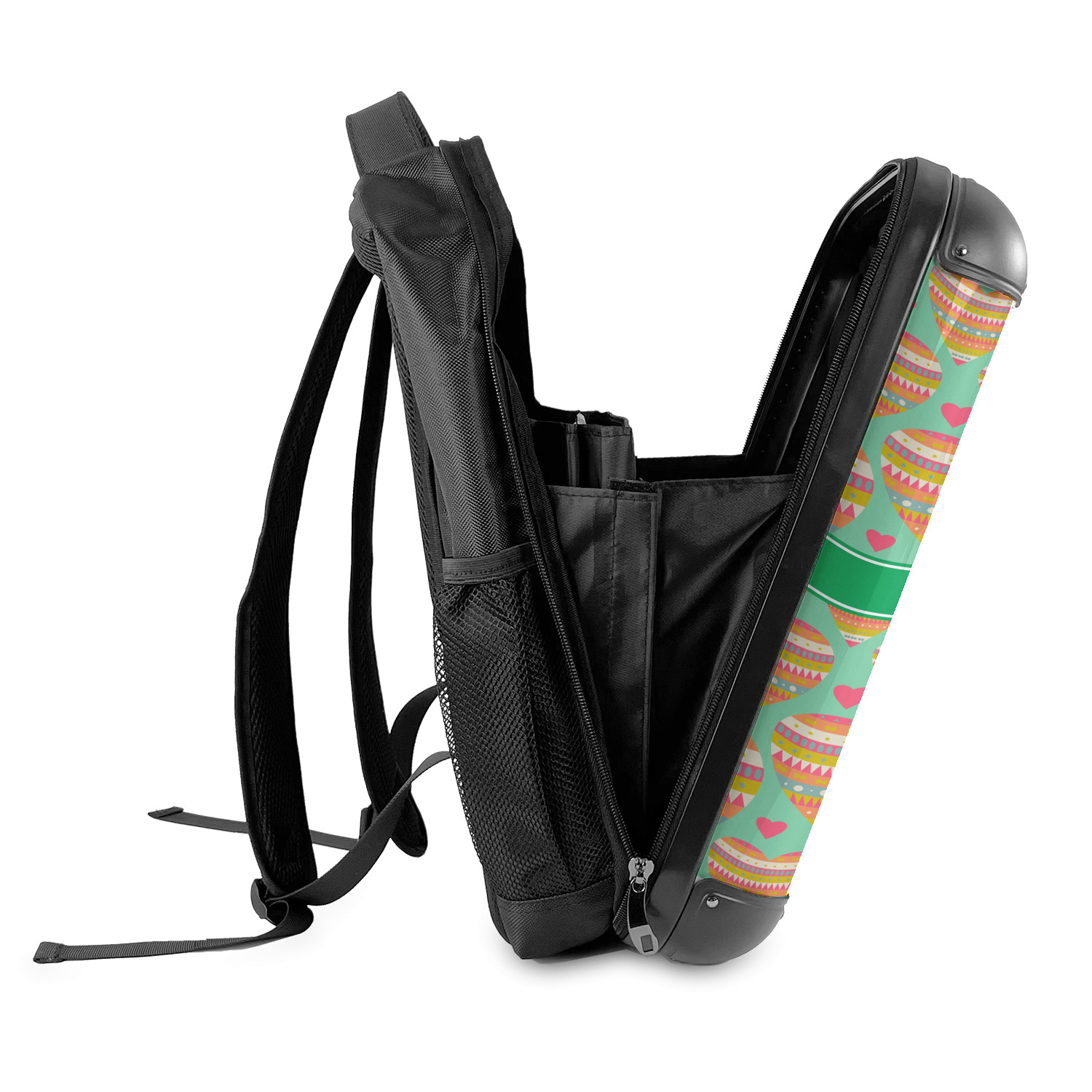 Aside from the sleeves there is a large open space in the backpack to ensure you can fit all of your required belongings. The hard outer shell on the outside helps protect your possessions inside and when customized adds that personal touch to make the backpack distinctly yours and unlike anyone elses.