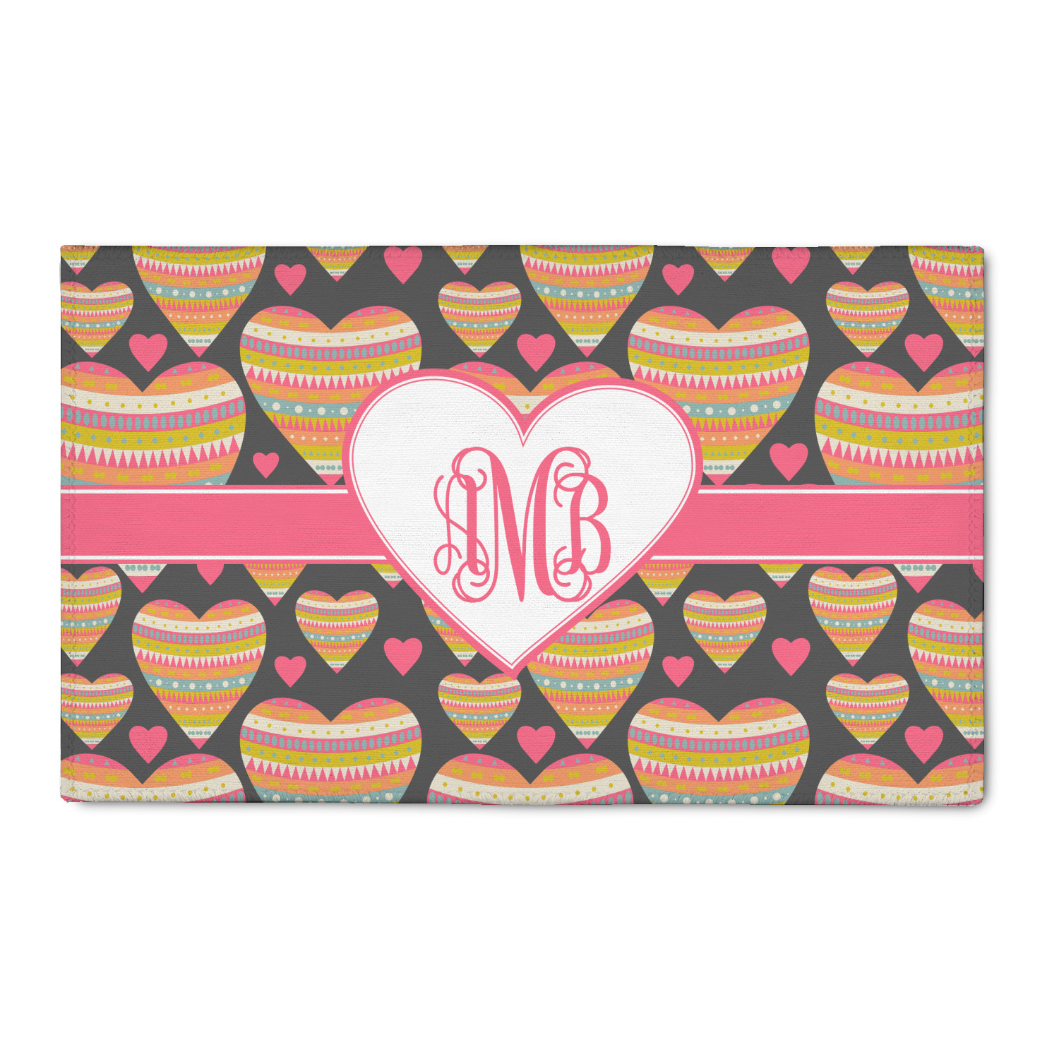 This Valentine's Day design looks sweet enough to eat. Multicolored hearts, each one filled with stripes and triangles and patterns of all kinds, are set on a crisp white background.