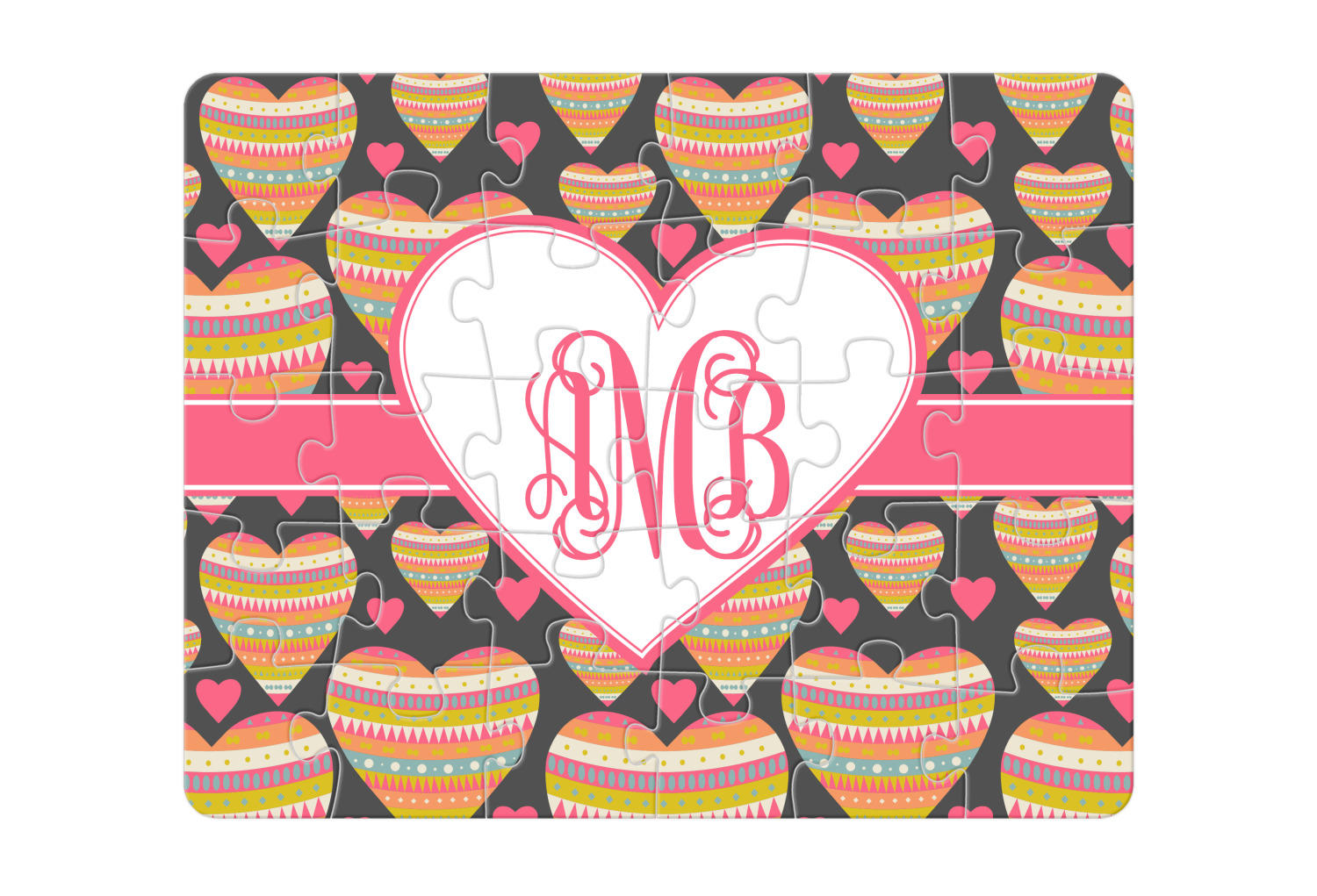 Depending on the look you are trying to achieve, you can add; a thematic pattern or background, with a photo in a frame and text or personalization to your puzzle. Basically if you can imagine it, you can design it!