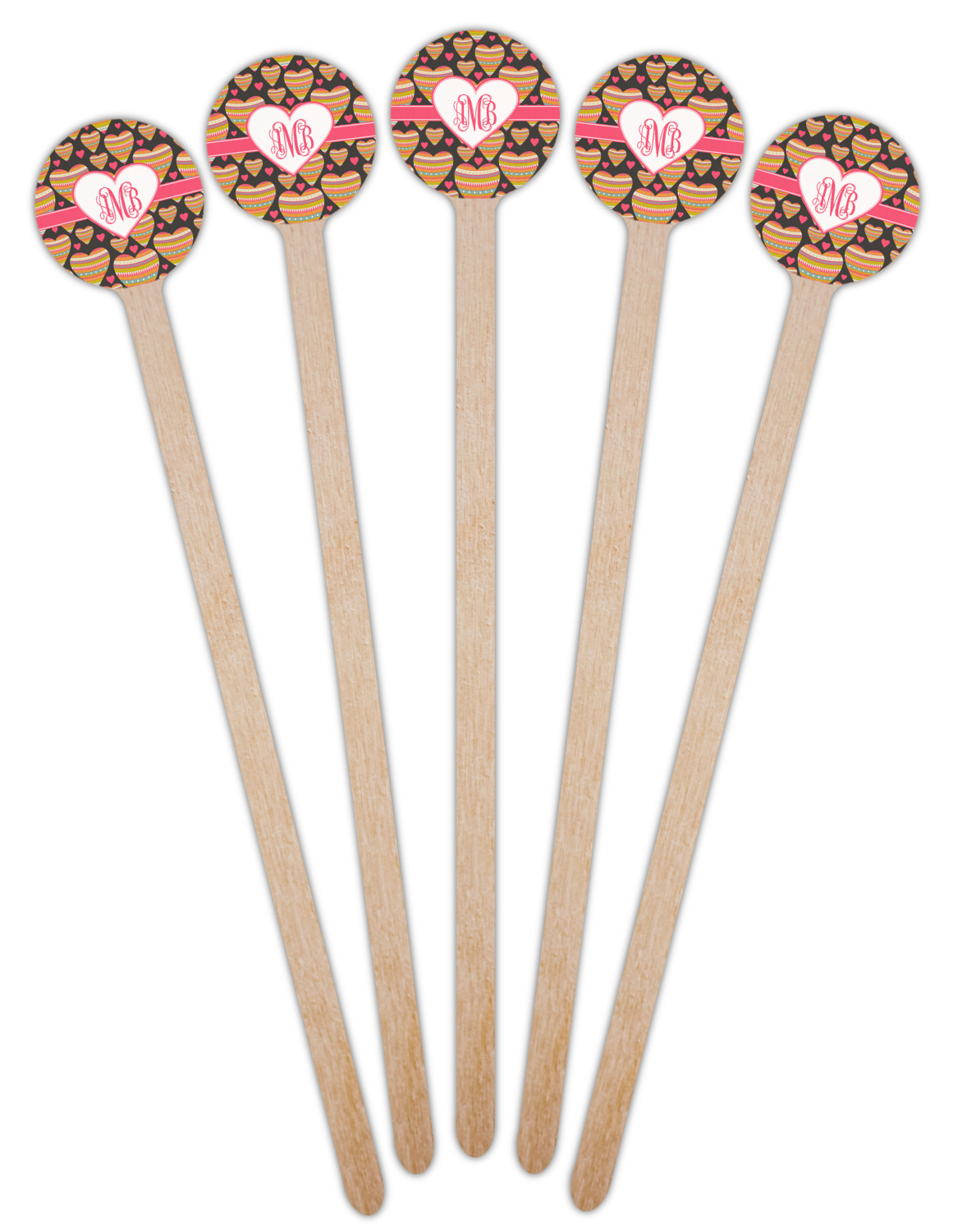 Shape + Symbol Designs for 7.5" Round Wooden Stir Sticks - Double-Sided