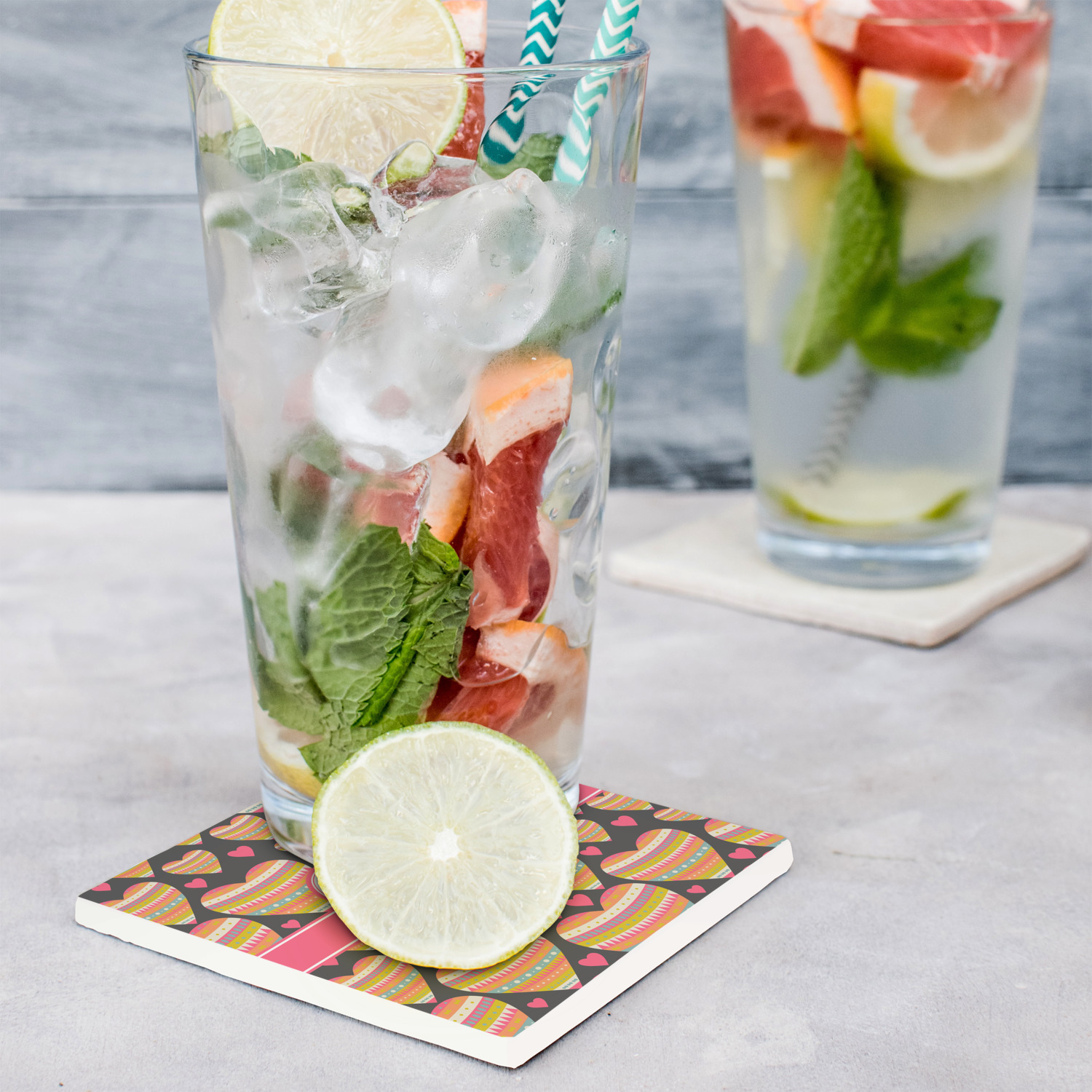 These customized stone coasters are perfect for use with beverages that are served in drinkware that "sweat". When cocktails, sodas, iced tea, water, etc. are served with ice in a regular glasses (non insulated glasses), they release condensation that drips down the outside of the glasses.