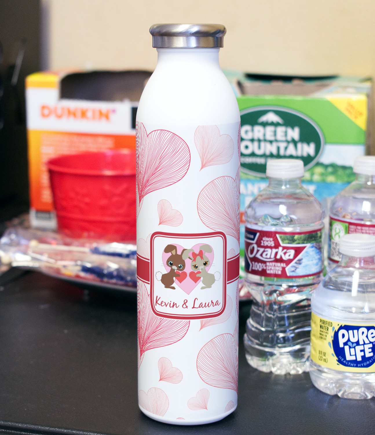 Design your bottle and we will print your design with a UV stable ink so it will not fade over time. After printing the design we apply a clear coat over the print to ensure its durability will stand up to rough every day use.