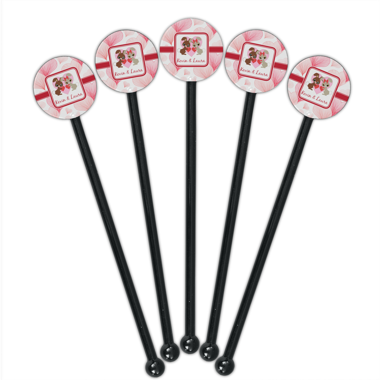 Shape + Symbol Designs for 5.5" Round Plastic Stir Sticks - Black - Double-Sided