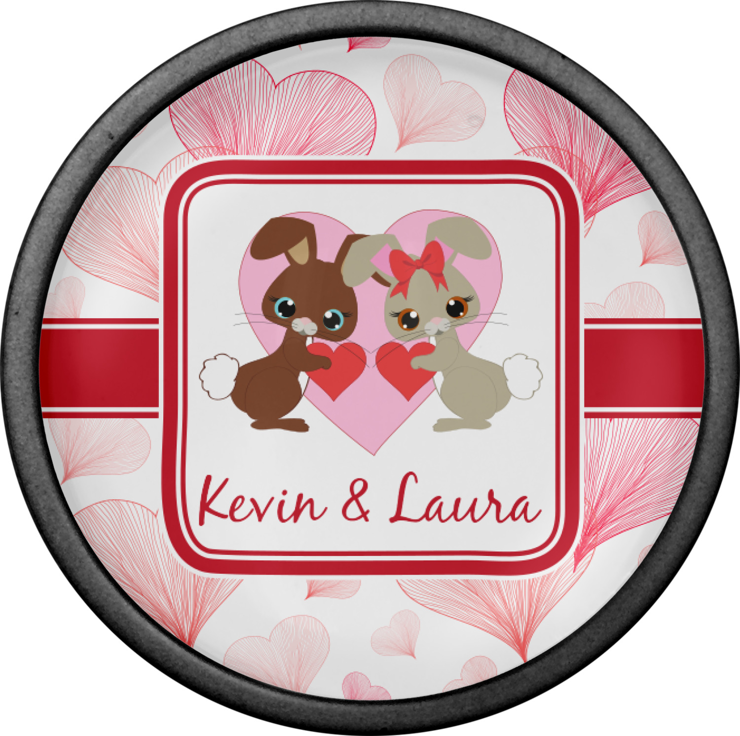 Pick the graphic you would like in the center label, and add His&Her's names for that special touch.