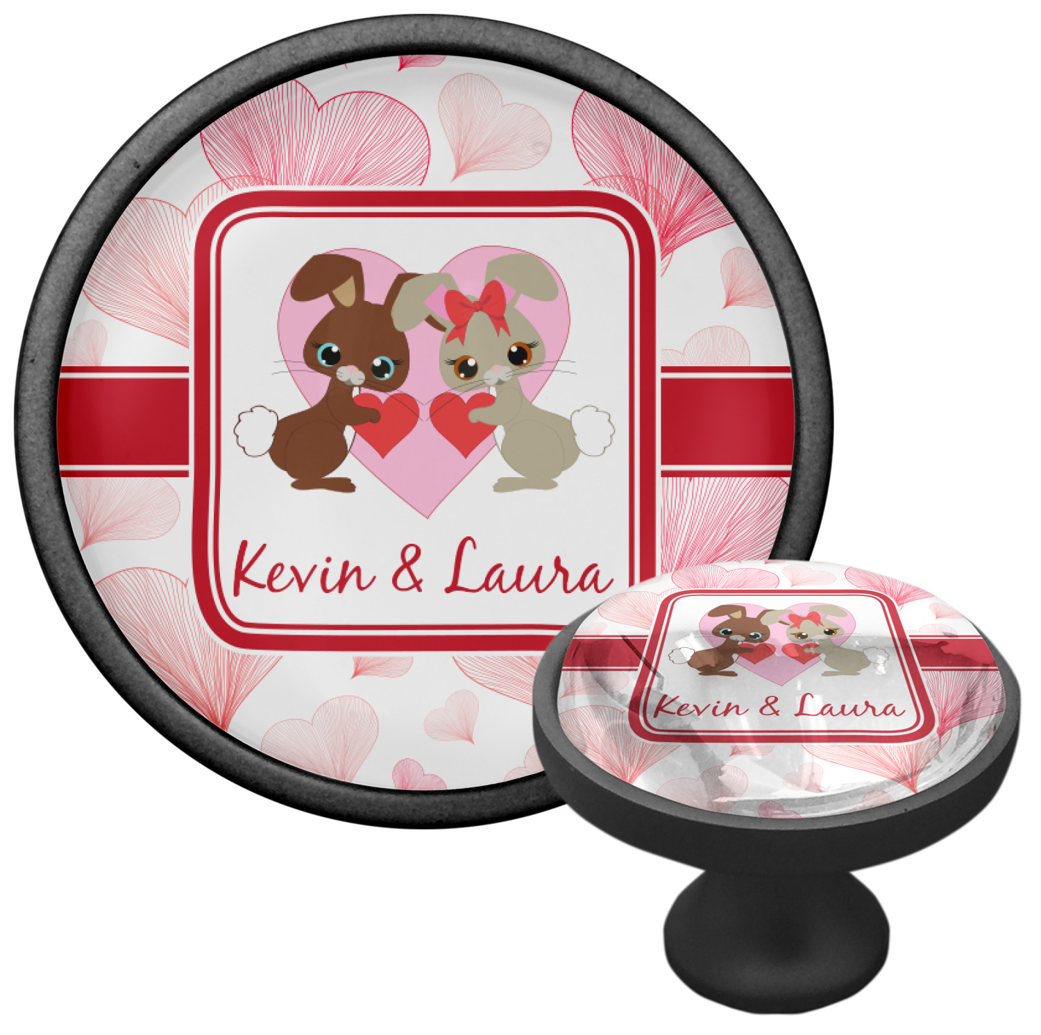 We sell these cabinet pulls in two different colors to better match your room's color scheme. We offer an oil-rubbed bronze base that is black in color, and a satin nickel option, which has a silver color. Your design is displayed across a high gloss vinyl insert that is placed on top of these cabinet handles. We then place a 1 inch thick glass cabochon atop the design, which seals the cabinet knob and makes the colors of your customization stand out. These custom cabinet knobs are approximately 1.3 inches in diameter. Your purchase includes a 1 inch screw that can be used to mount the knob to any cabinet in your home.