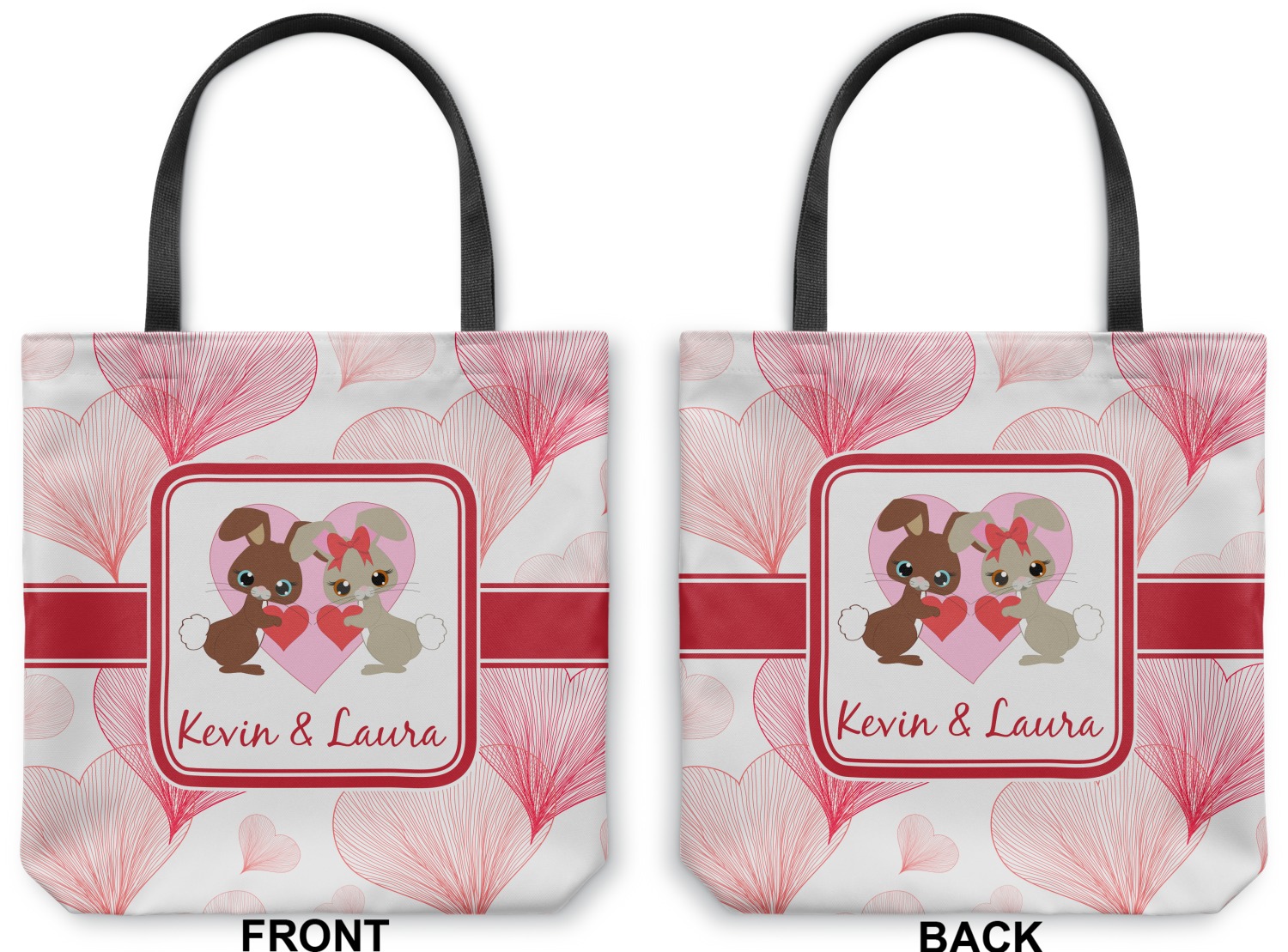 Our totes are made right here in the USA. Your design is printed on canvas fabric; the fabric is then cut and sewn on the sides and on the bottom to add an approximately 3.5 inch gusset. Black cotton handles are sewn in and reinforced. Your tote has a designs on both sides - the designs can be the same or different - the choice is yours. The inside of the tote has a black fused lining.