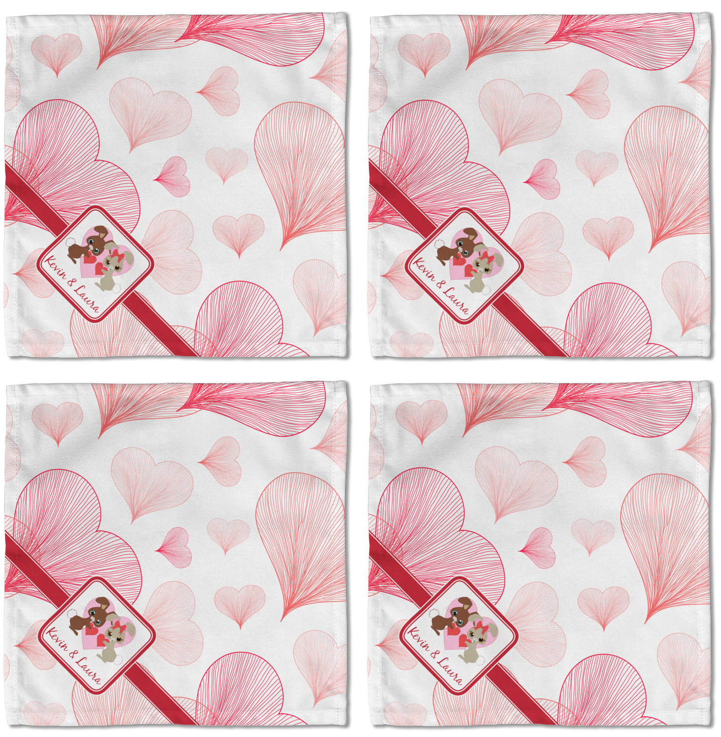 Each customizable cloth napkin is a polyester material guaranteed for long-term use. Since our napkins are cloth, it serves as a great reusable and eco-friendly dining decor. We sell personalized napkins individually or as a set of 4! Print your own unique design on all four napkins, or create four individual designs for each napkin! We offer two different napkin sizes - Cocktail napkins (approx. 10 x 10) and Dinner napkins (approx. 20 x 20). We print your design on one side, perfect for displaying your custom designed lunch napkins in any fold or table setting!