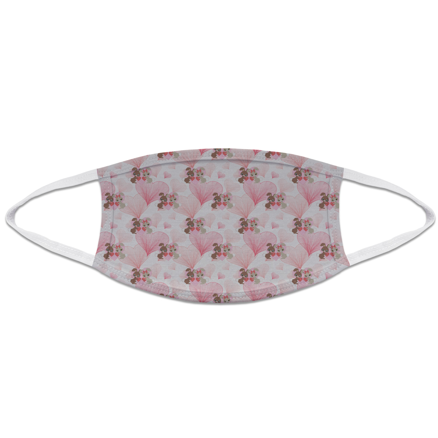 The masks are made from two layers of the soft jersey fabric. The outside layer will be printed with your design, while the inside layer is white. The body of the mask is trimmed and double stitched with the same jersey fabric. The masks are approximately 7 inches wide by 4.75 inches high
