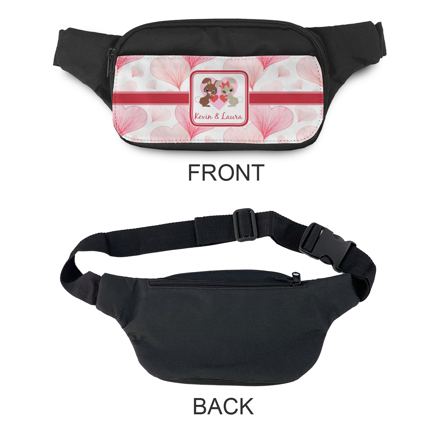 This is a unisex fanny pack - suitable for both men & women. The front flap is printed in full color with your design. You can add a photo, logo or any image that you would like. We offer a number of design templates that can be customized by you to your liking.